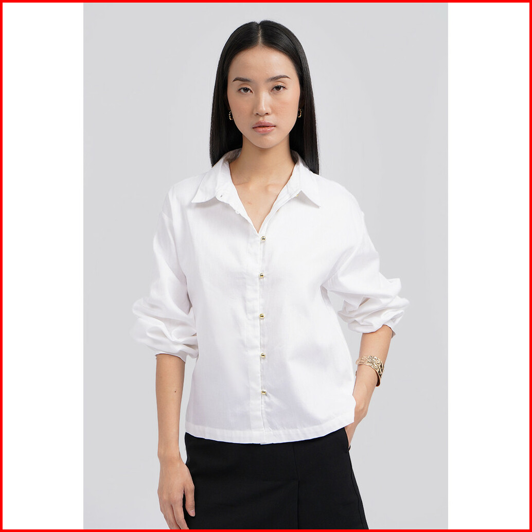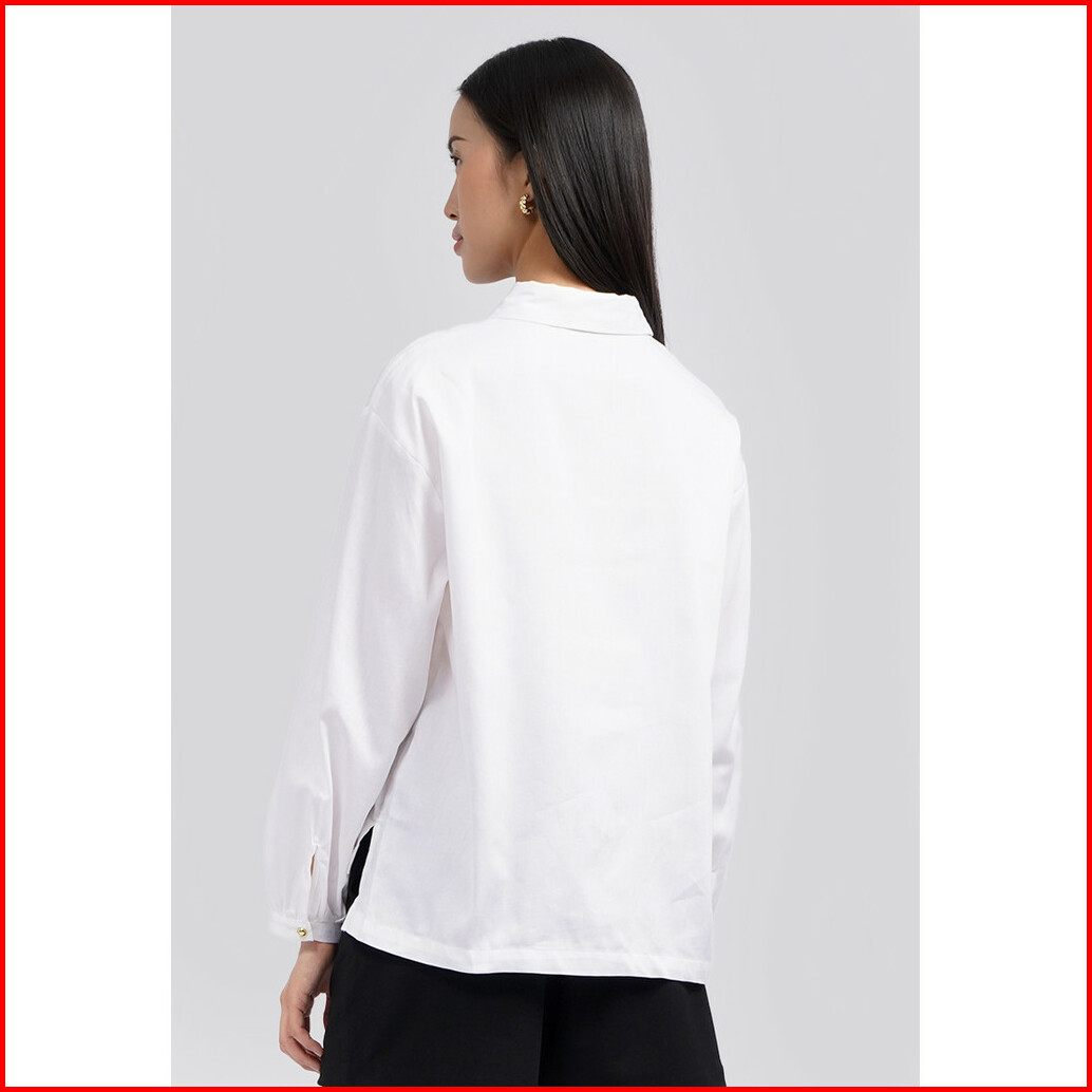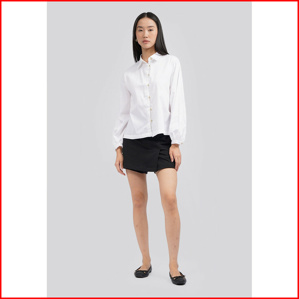 Executive Puff Sleeves Collared Blouse Off White