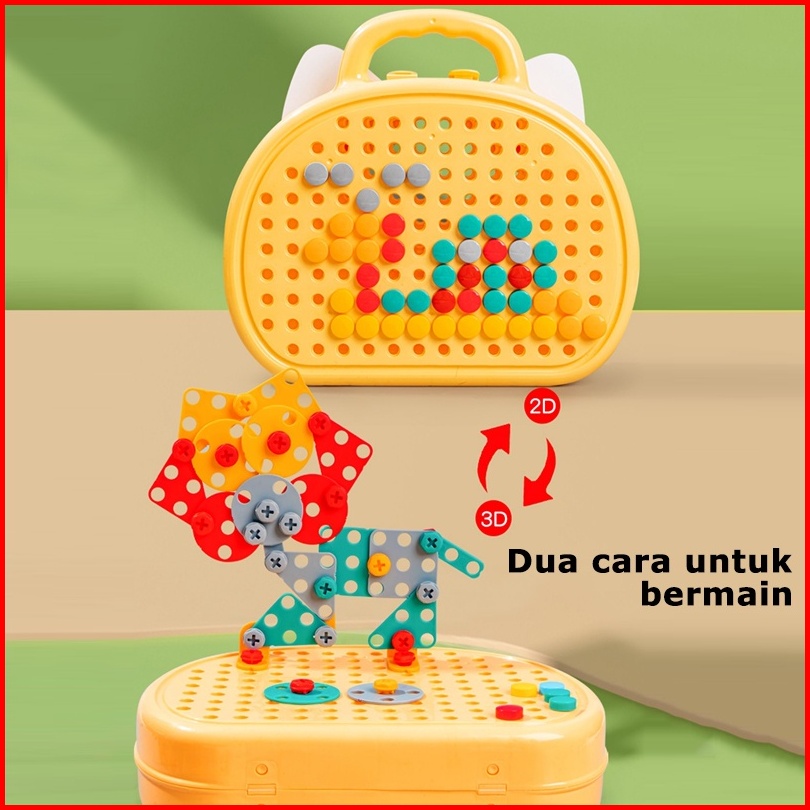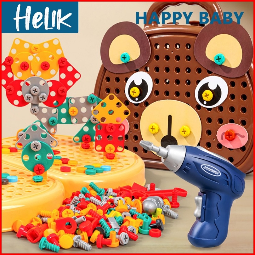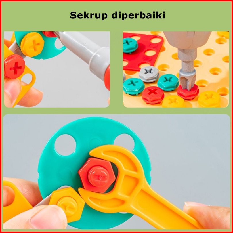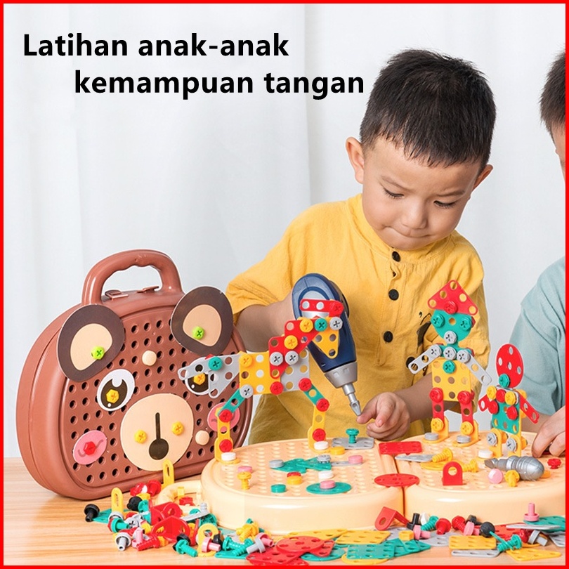 Mainan Bor Listrik Obeng Tool Set 203pcs Mainan Alat Anak Mainan Edukasi