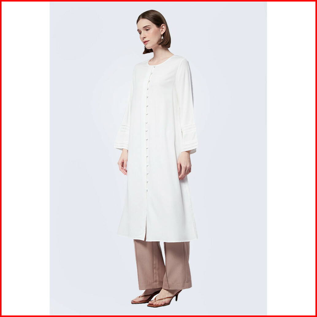 Executive Flowy Button Up Kurta Tunic Off White