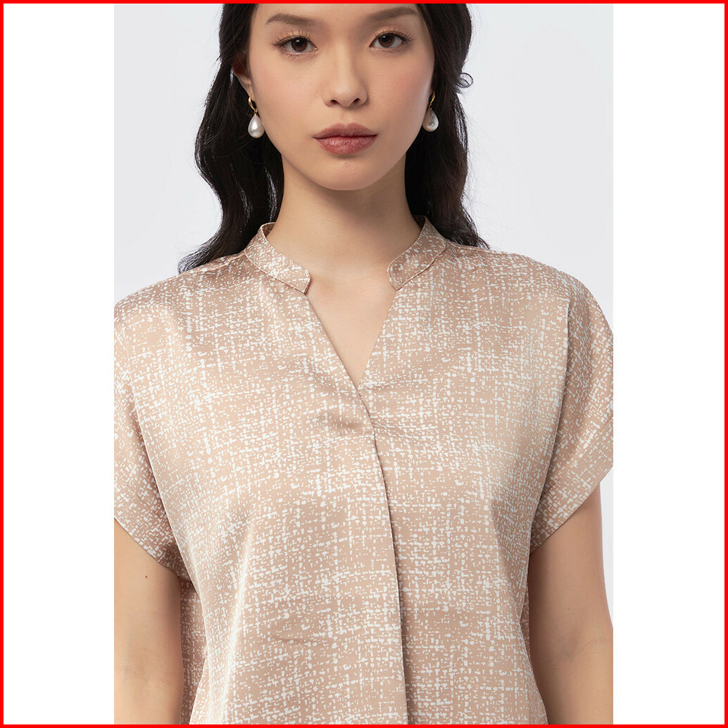 Executive Printed Short Sleeve V-neck Blouse Beige