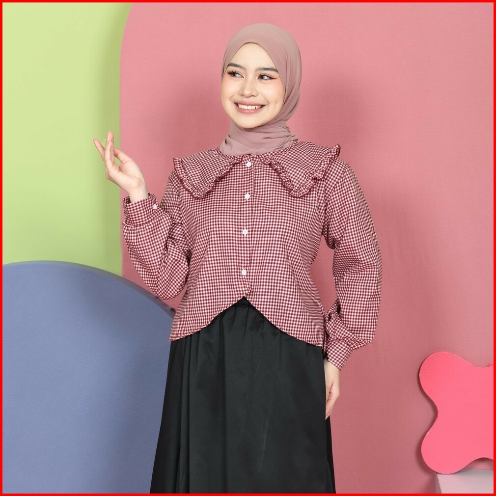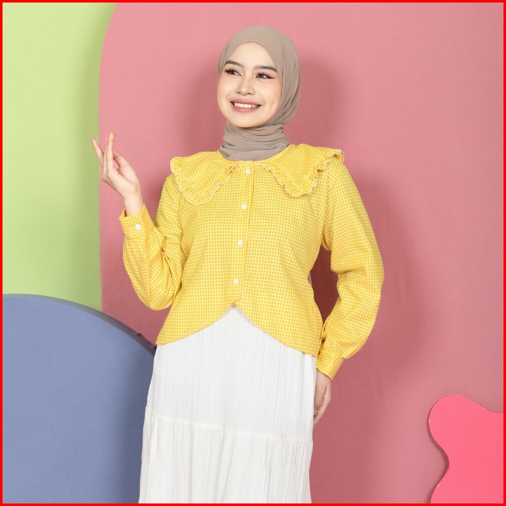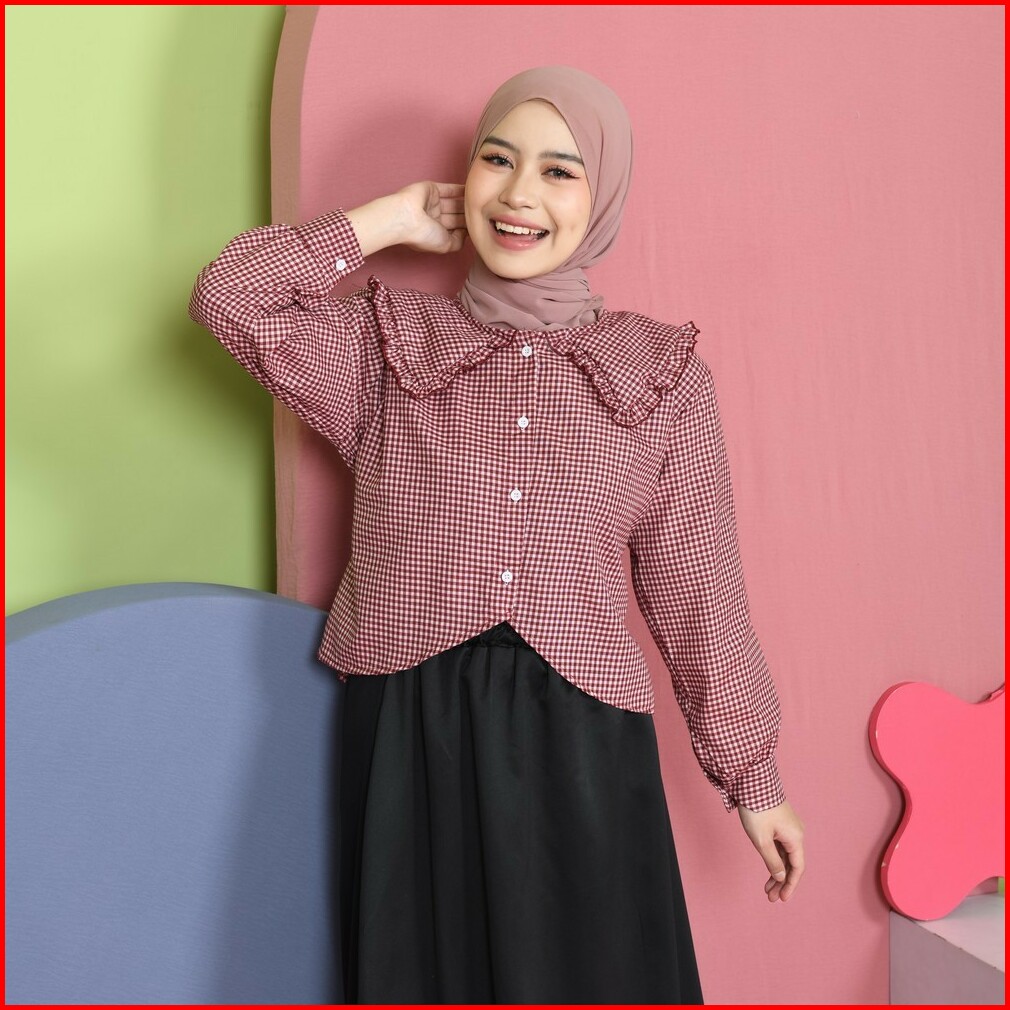 Mybamus X Oemahayu Tya Square Collar Shirt Kemeja Kotak Crop Kekinian