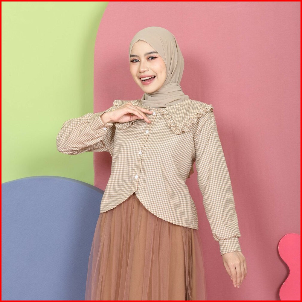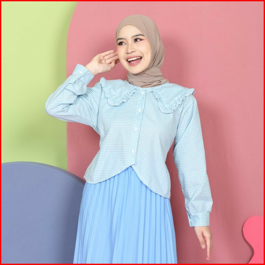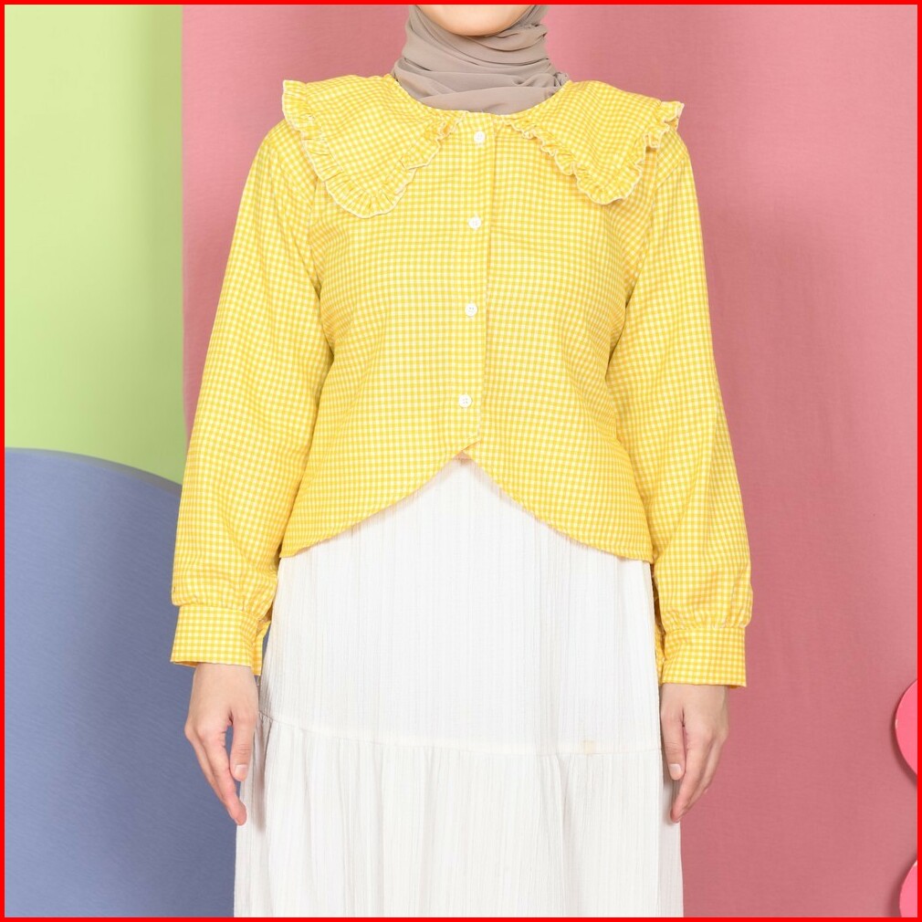 Mybamus X Oemahayu Tya Square Collar Shirt Kemeja Kotak Crop Kekinian