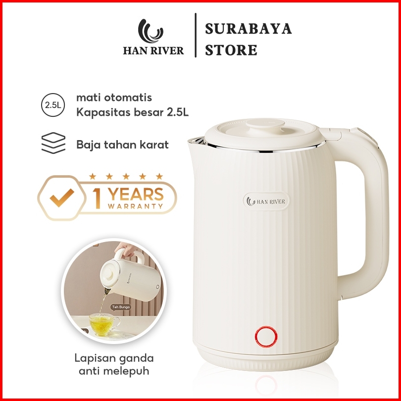Han River Hrdsh01 Teko Listrik Air Kaca Stainless Steel Transparan Kettle Boiling Water 2.5l