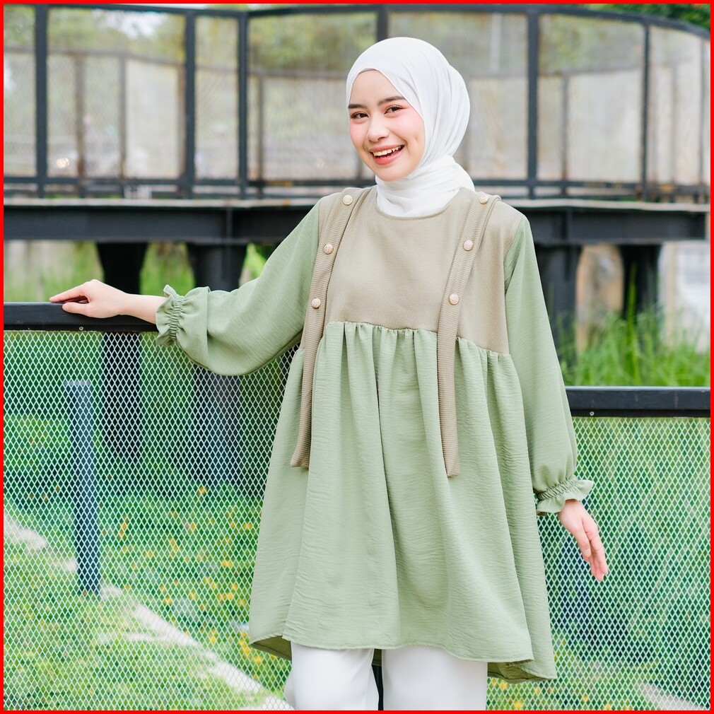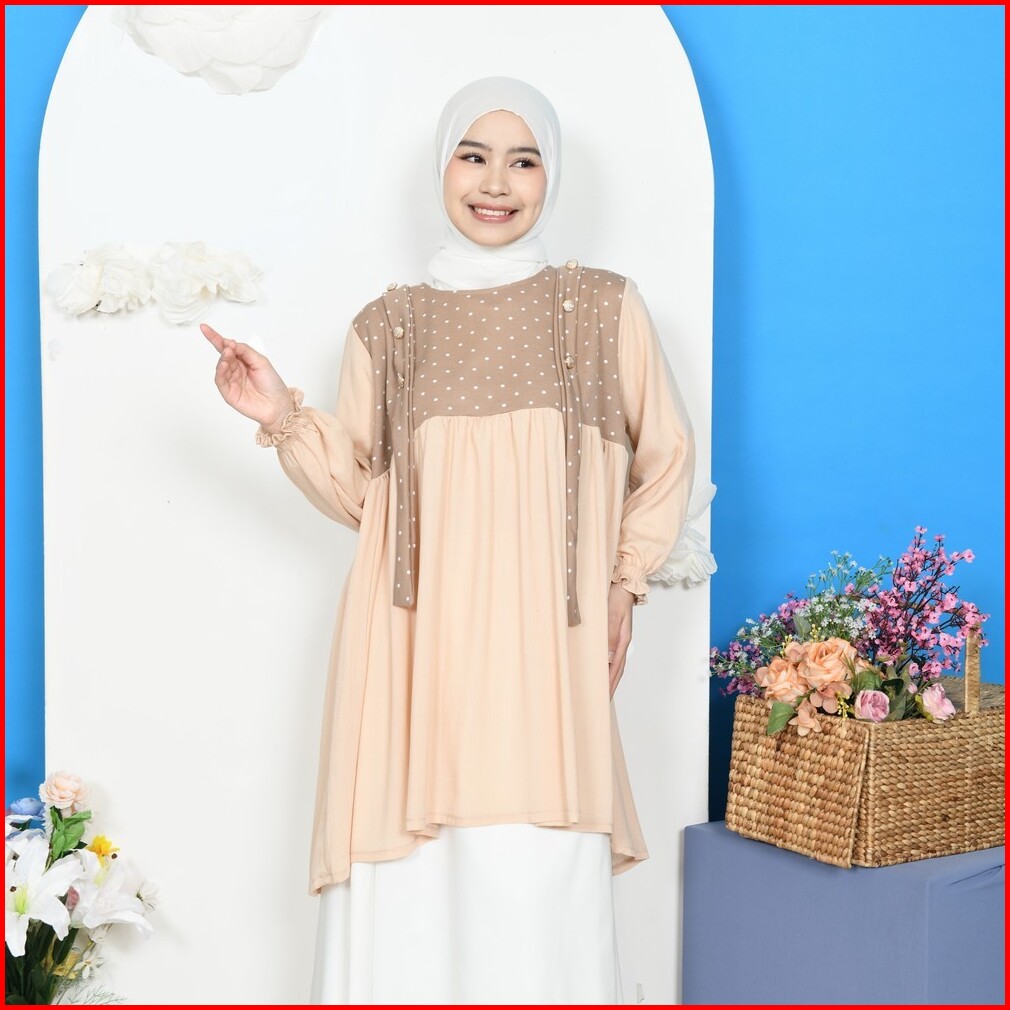 Mybamus Nola Blouse Midi Tunik Kekinian Atasan Lengan Panjang Tunik Lebaran 2025