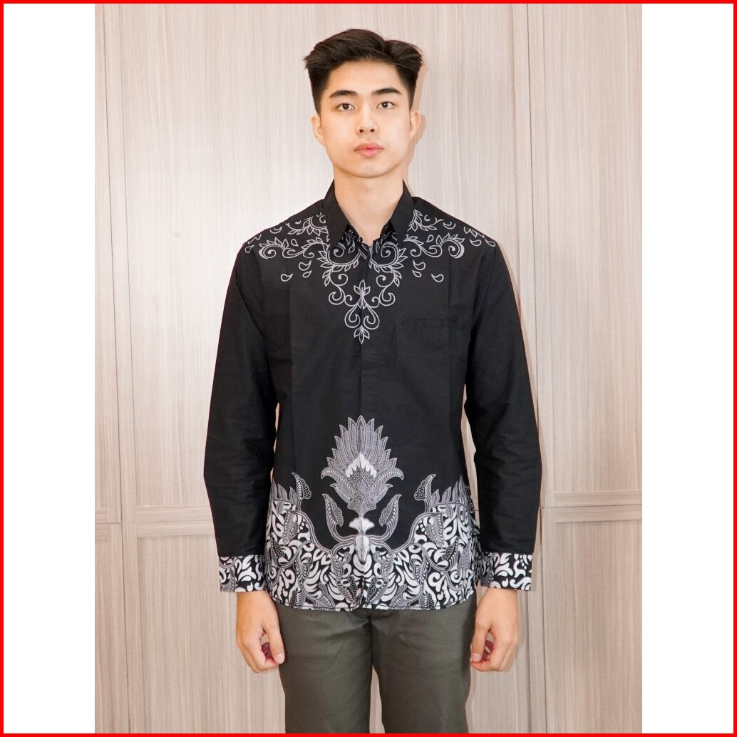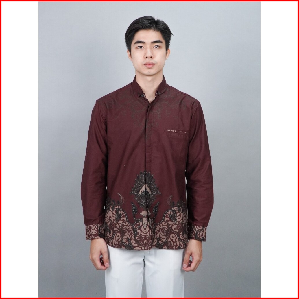 Swipe Up Kemeja Batik Pria Modern Lengan Panjang Widura Maroon