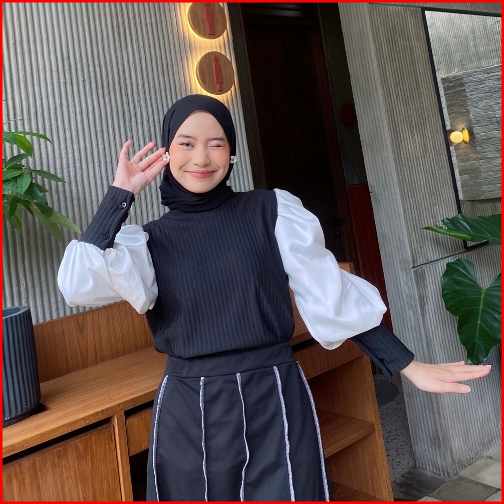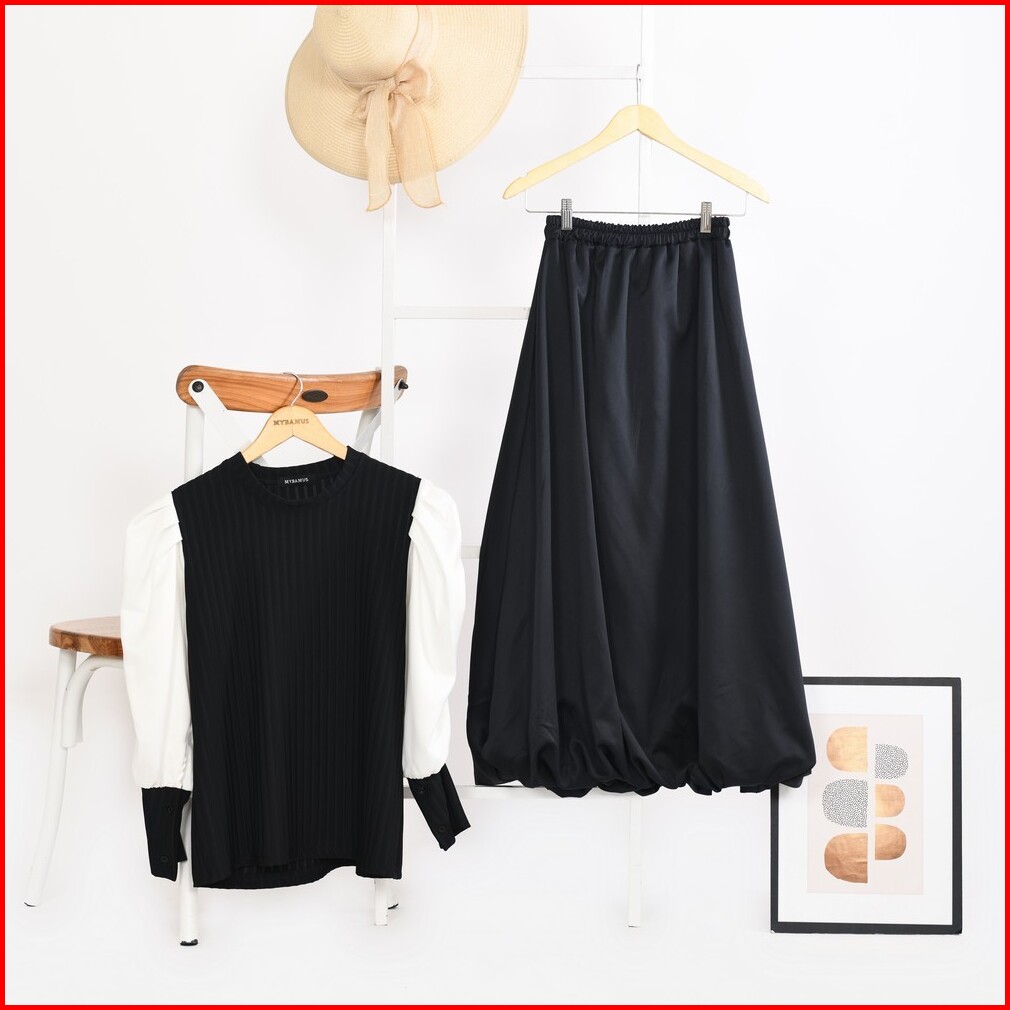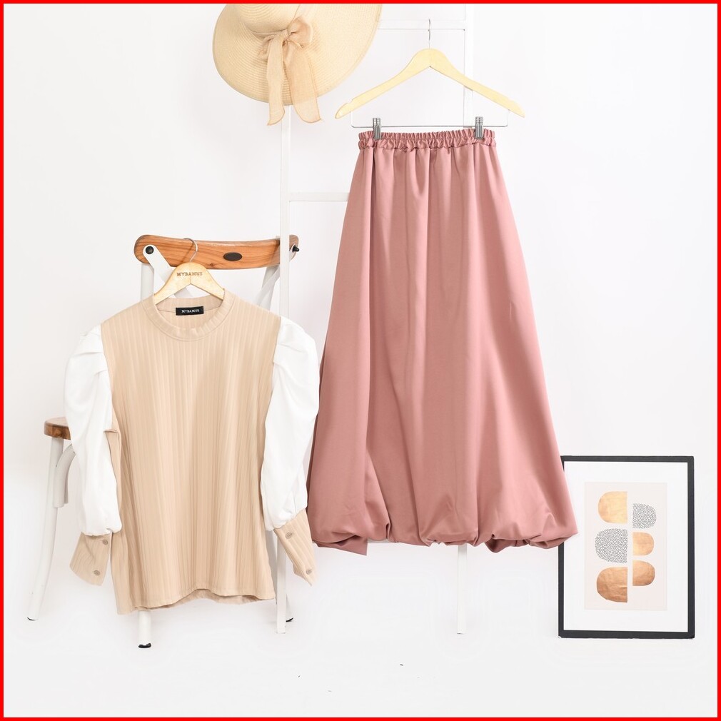 Mybamus Bella Setelan Muslim Wanita Atasan Puff Rok Ballon Kekinian One Set Kondangan Santai