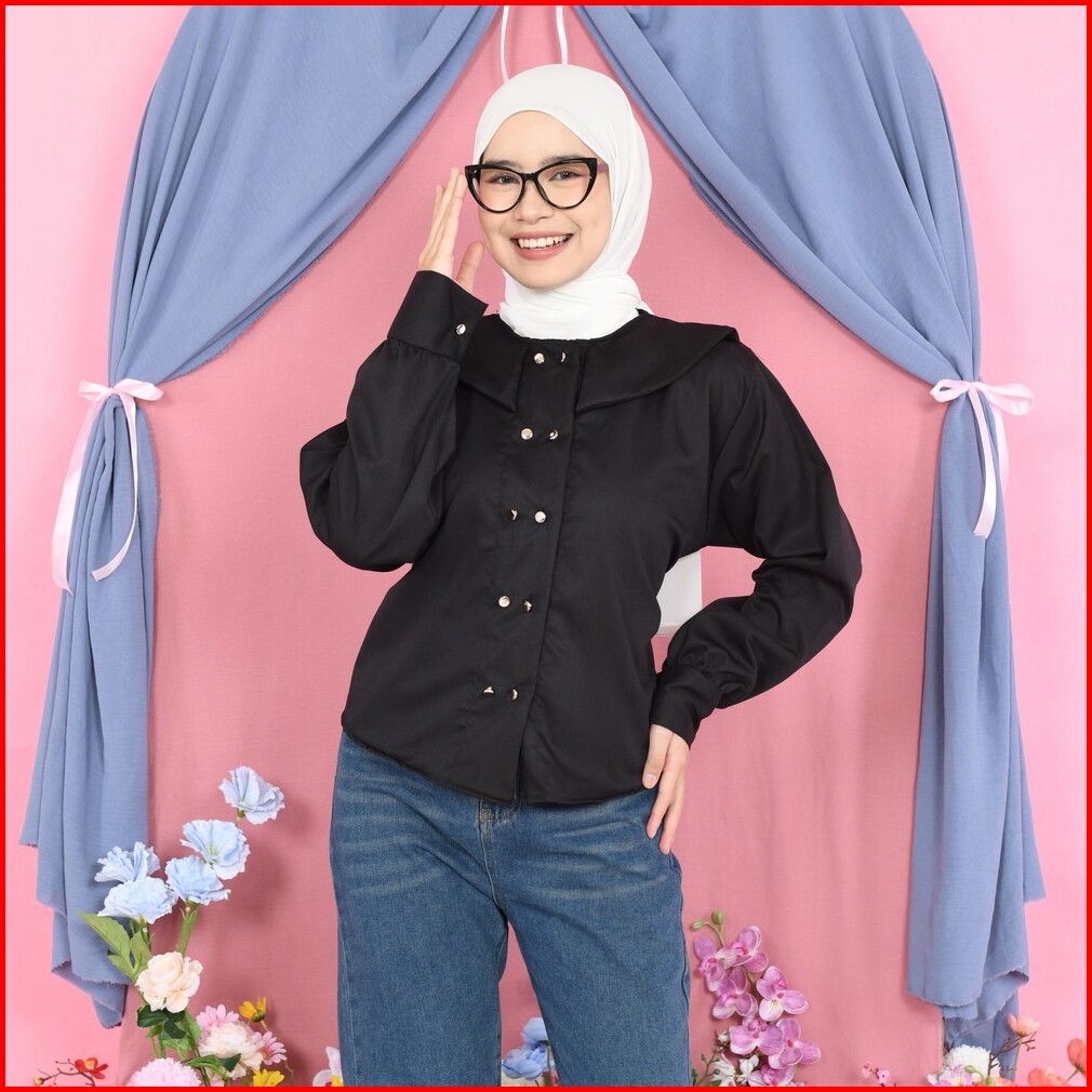 Mybamus X Oemahayu Sinsin Top Button Kemeja Polos Wanita Kekinian