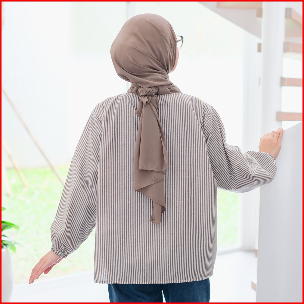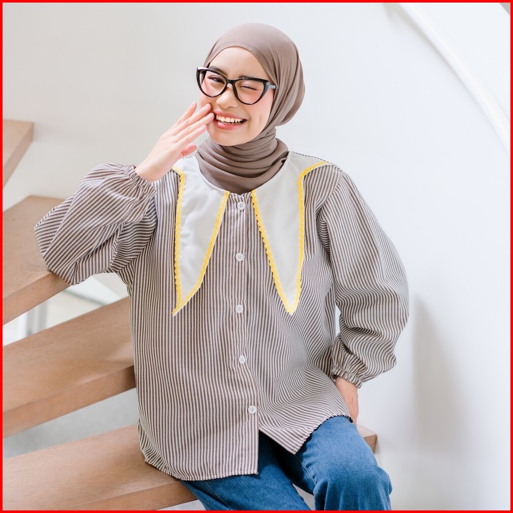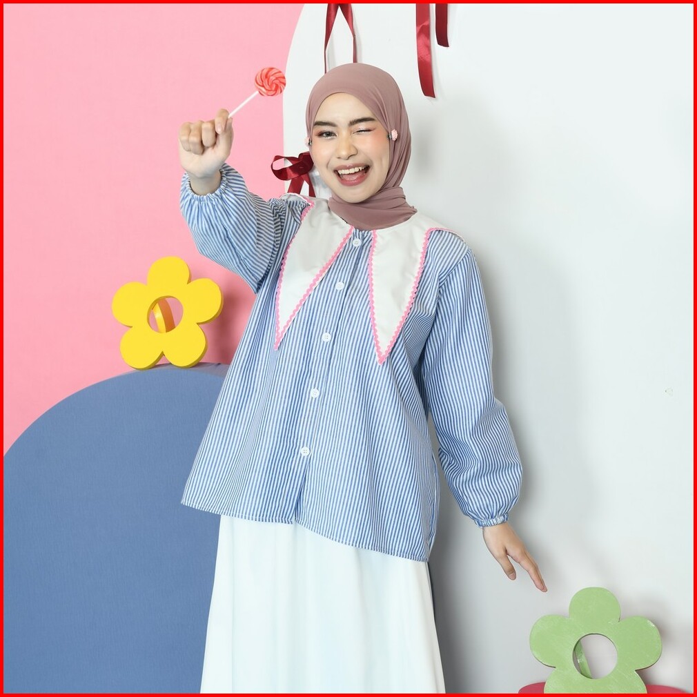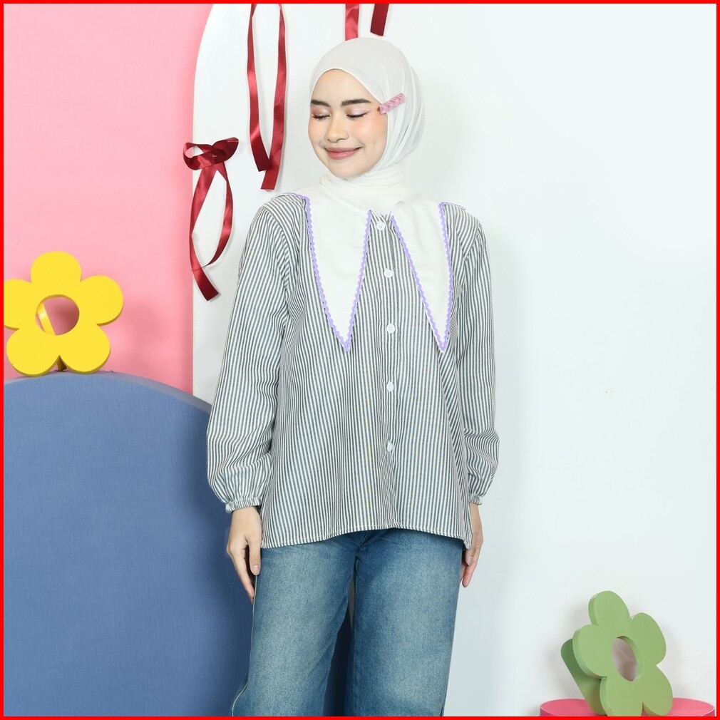 Mybamus Bunny Kemeja Stripe Atasan Garis Kekinian Variasi Kerah Renda Zigzag Stripe