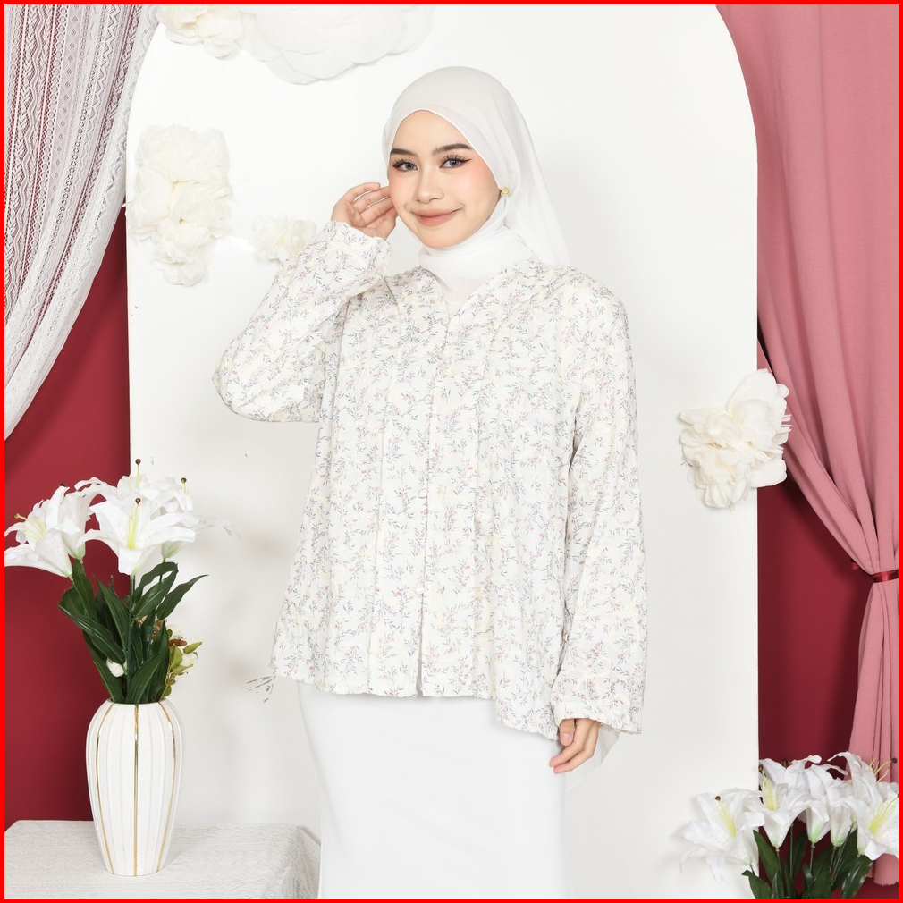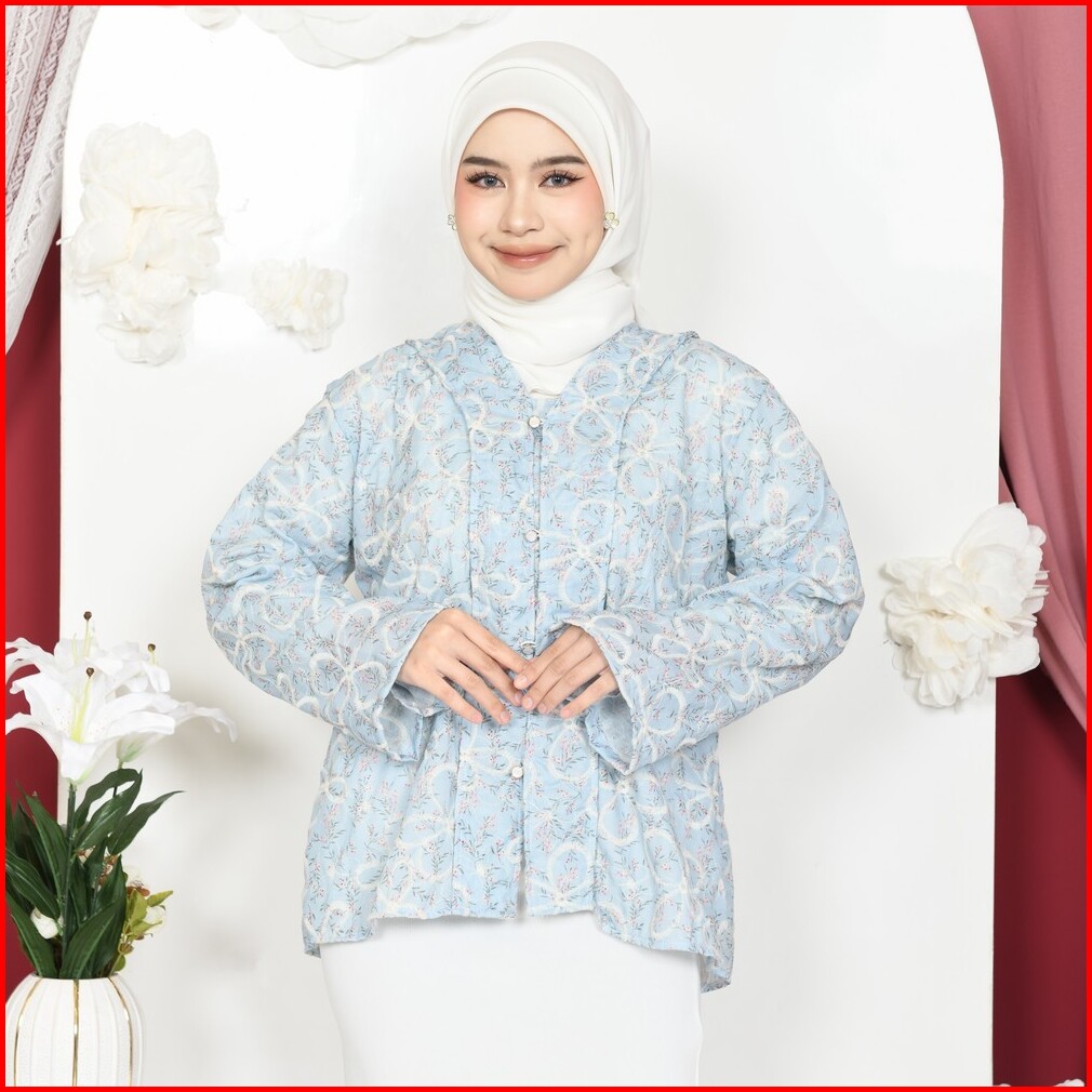 Mybamus Arianna Blouse Atasan Kebaya Kutubaru Casual Motif Bunga Bordir Modern Blouse Lebaran
