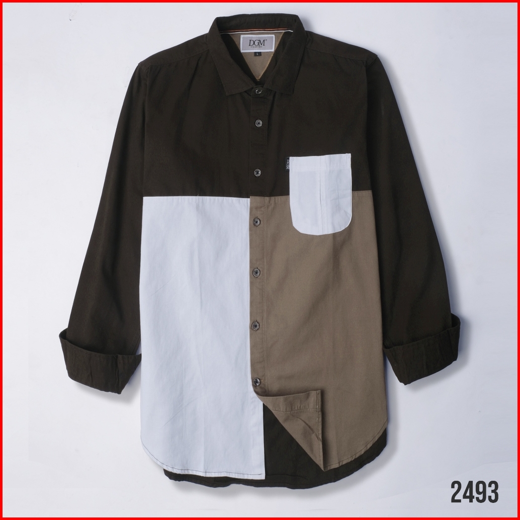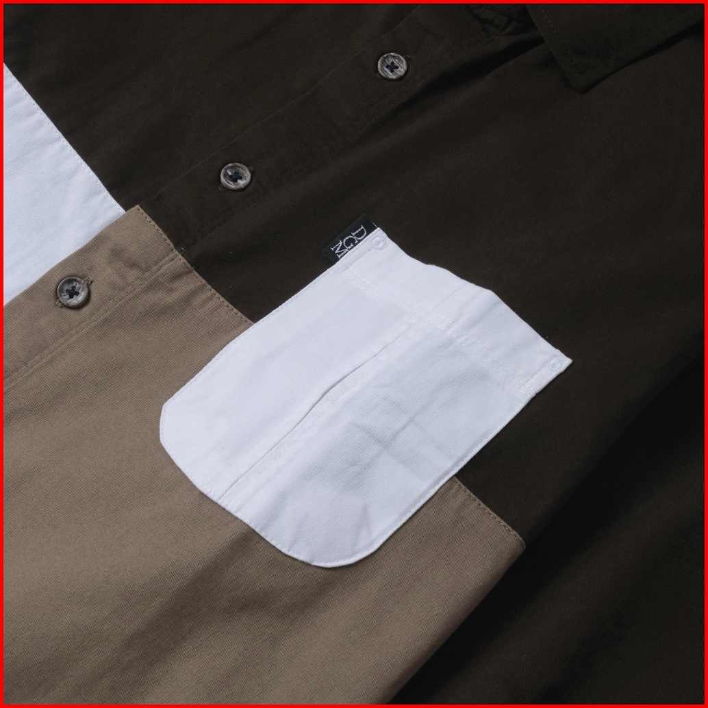 Dgm Workshirt Kemeja Kerja Katun Twill 30s Premium Lengan Panjang Kombinasi Kemeja Pria Dark Coklat-grey White Skala 249