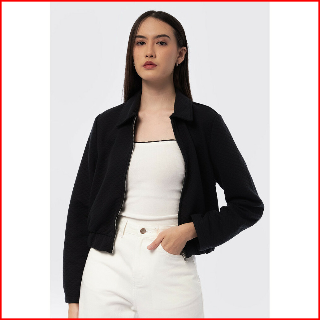 Executive Full Zip Jacket With Elastic Waist Black