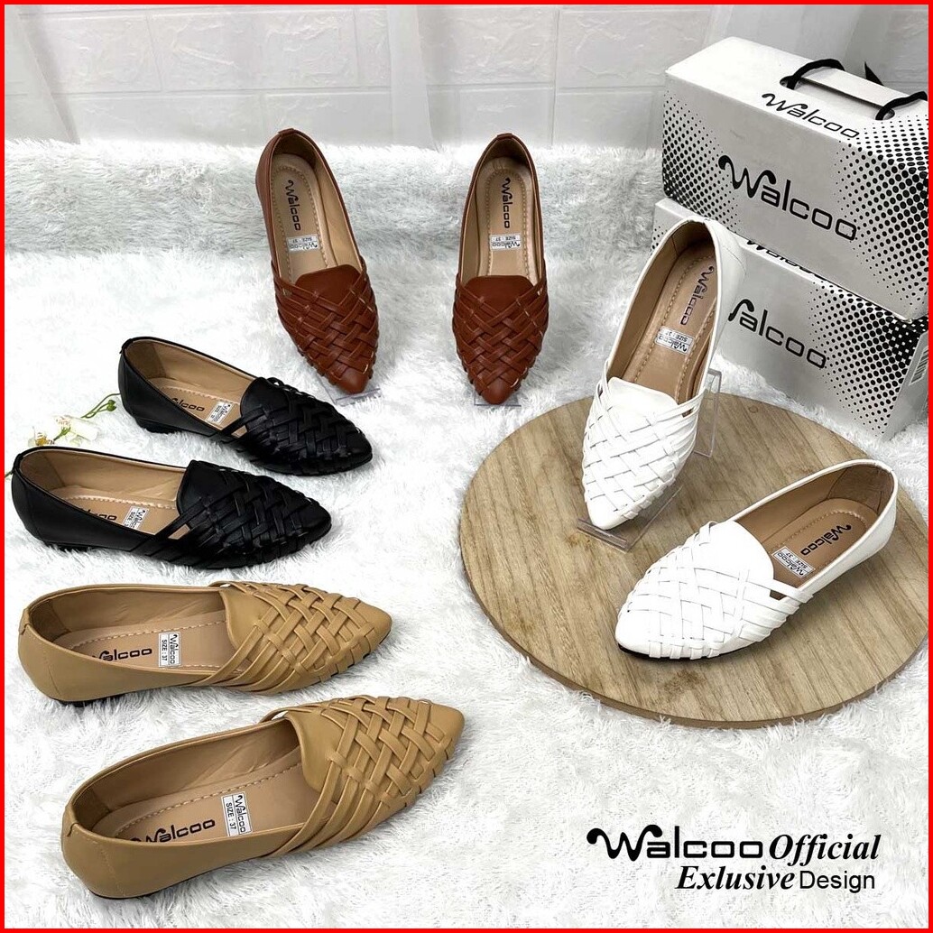 Walcoo Allesa Sepatu Flatshoes Wanita Model Rajut