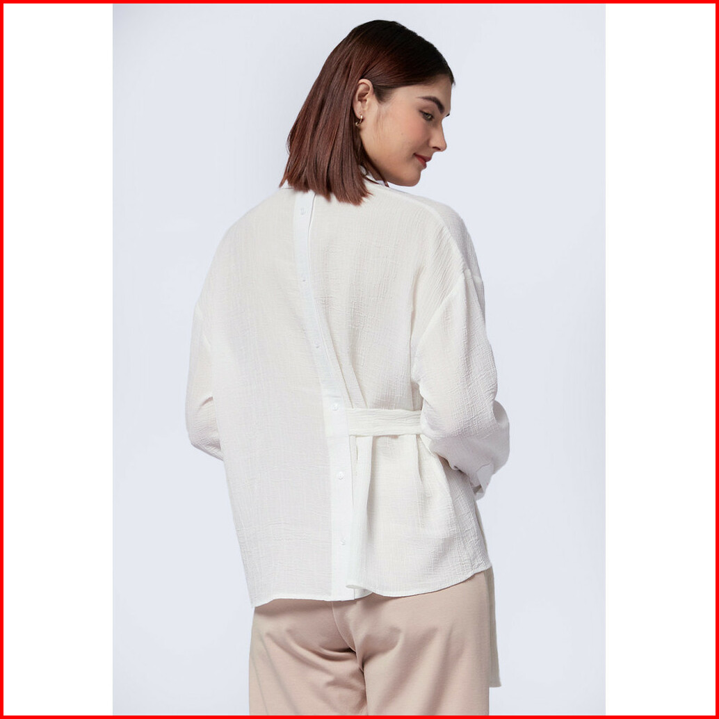Executive Belted Long Sleeve Blouse Off White