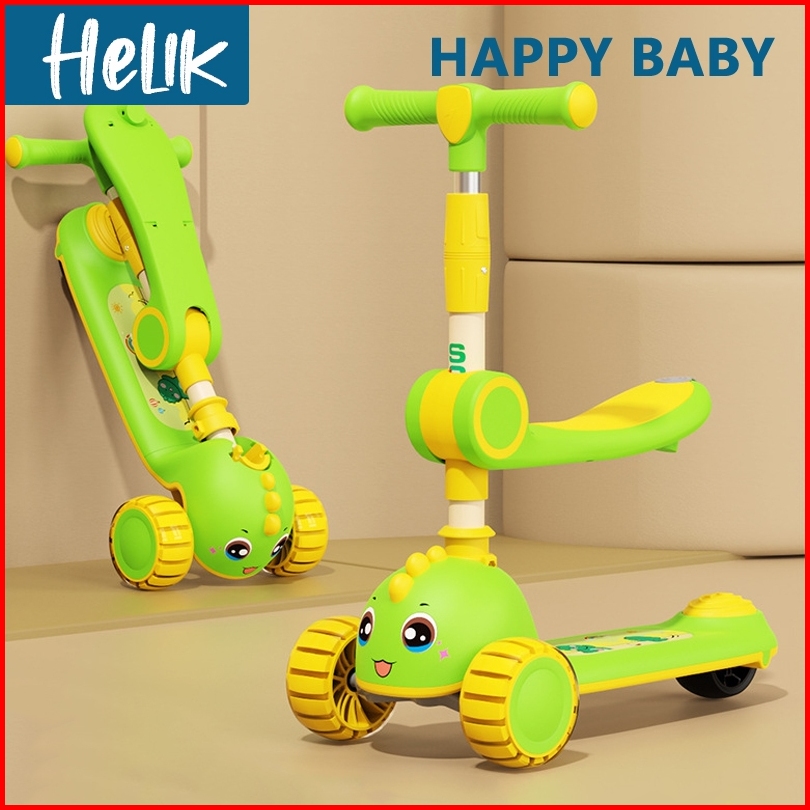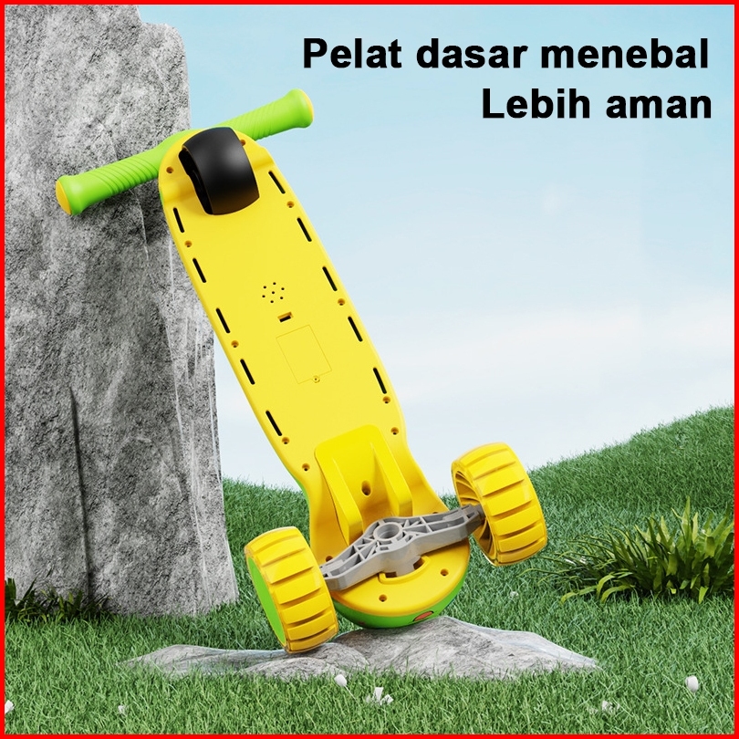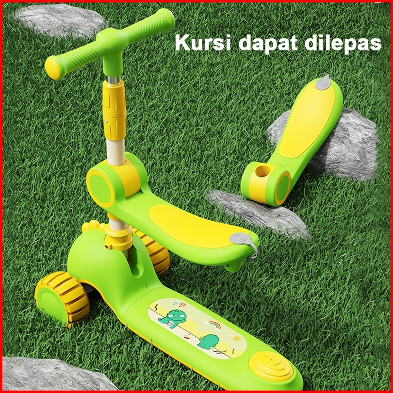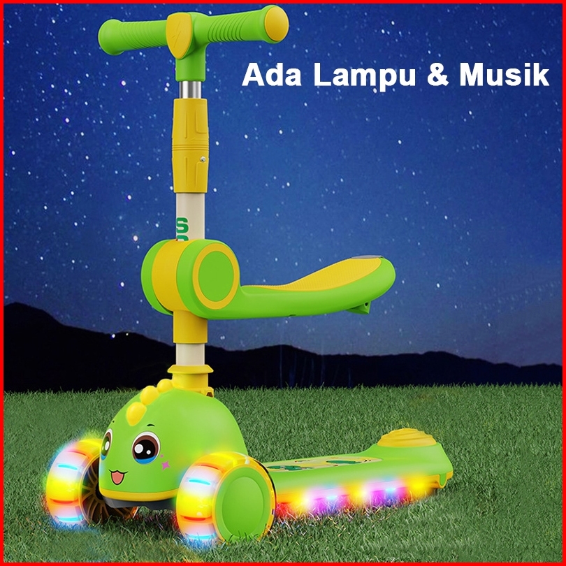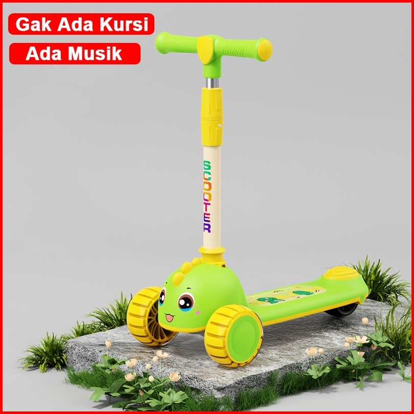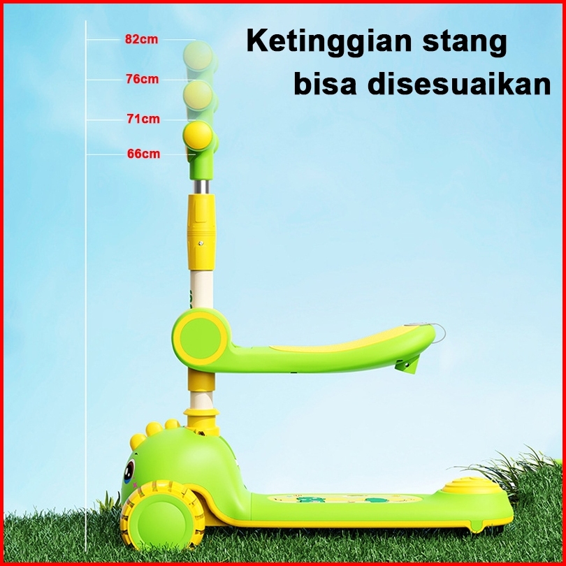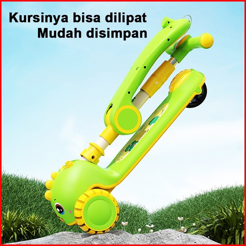 Skuter Anak 3 Roda Dengan Lampu Musik Scooter Dinosaurus Lucu Bisa Lipat