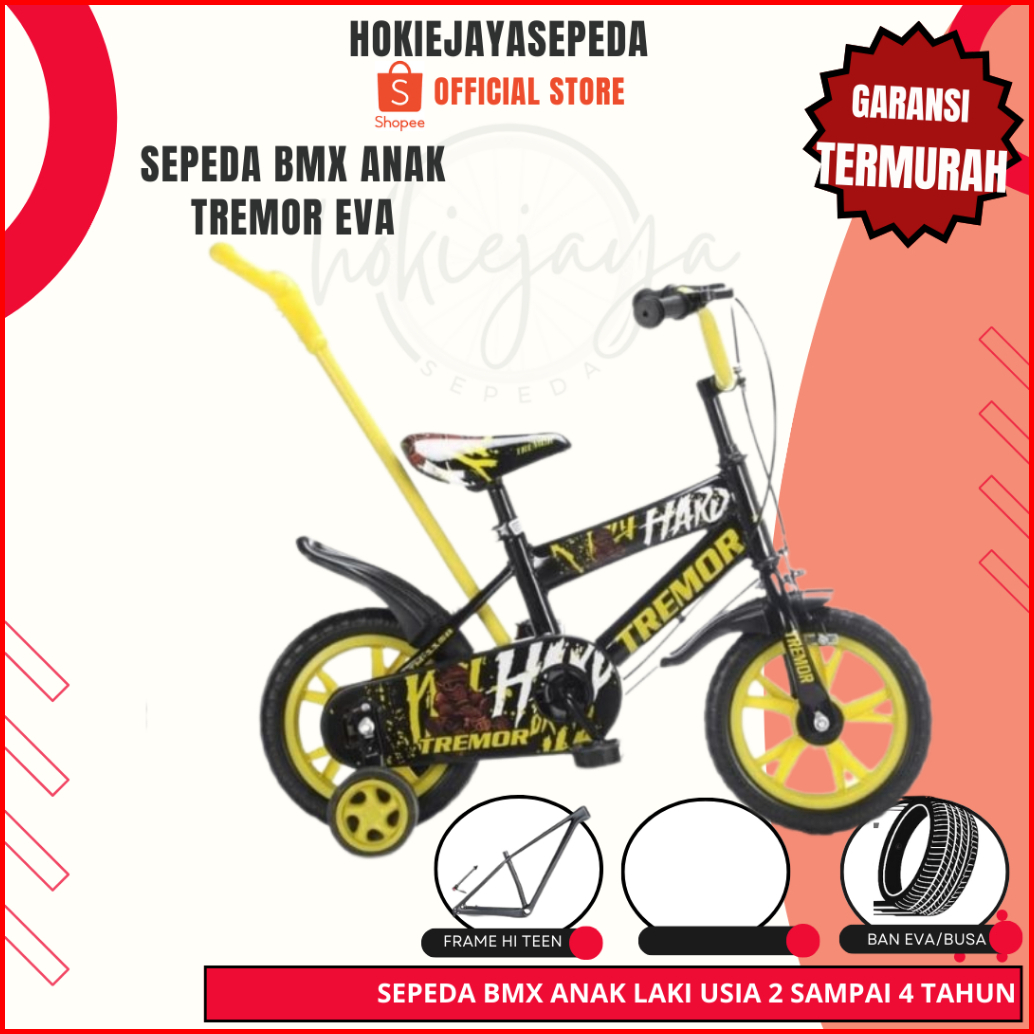 Sepeda Bmx Anak 12 Tremor Tongkat Stir Ban Busa Eva Anti Kempes Untuk Anak Laki Usia 2-4 Tahun