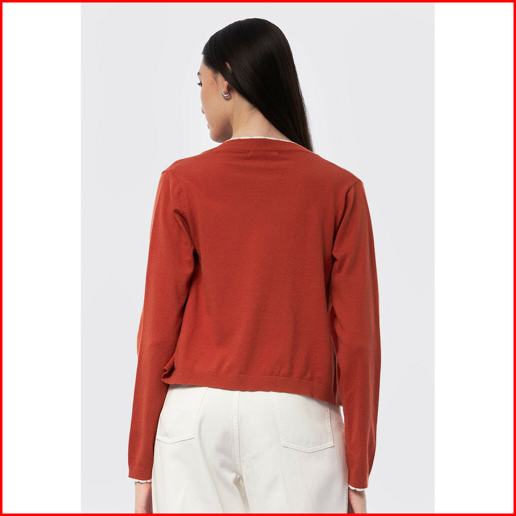 Executive Long Sleeve Cardigan With Contrast Lining Orange
