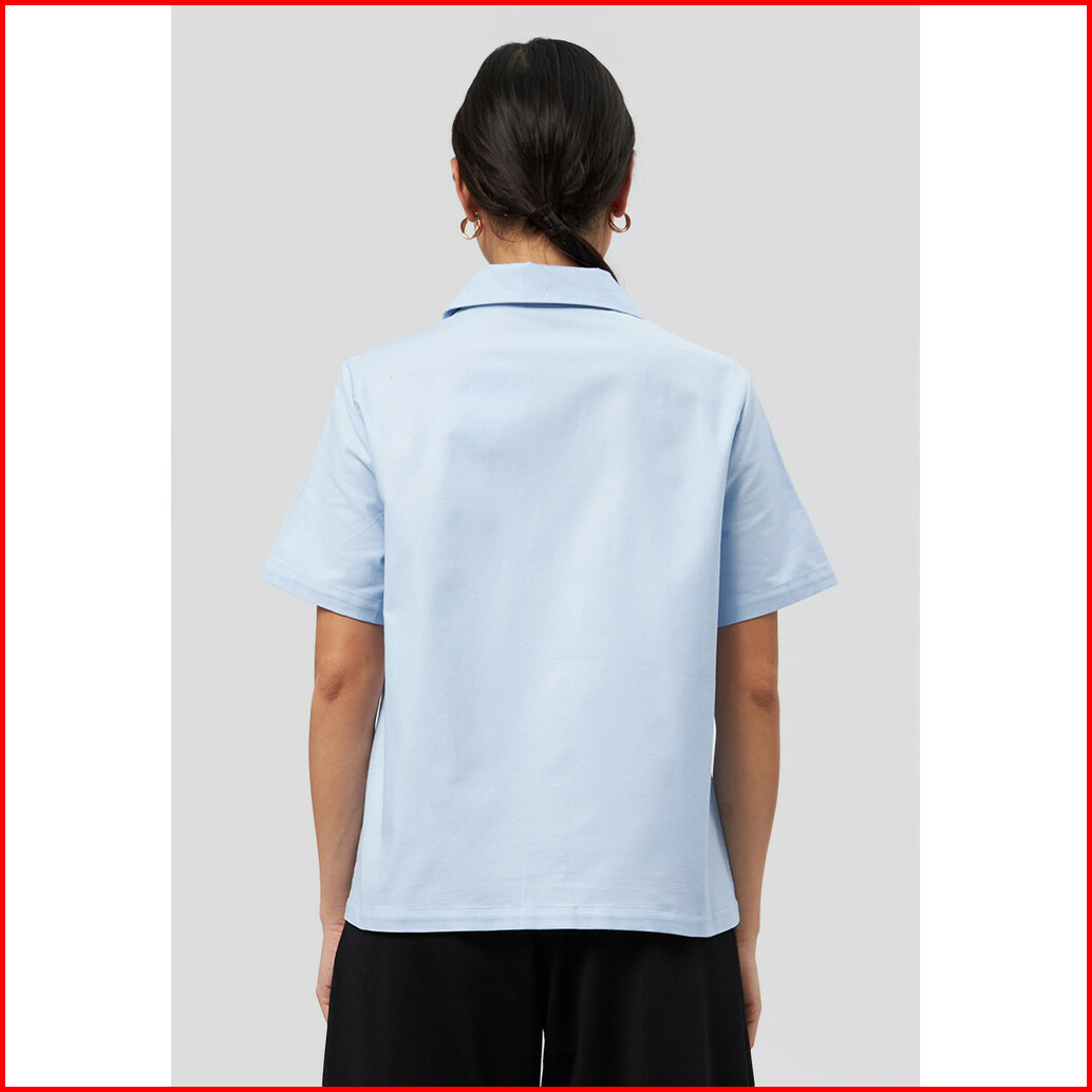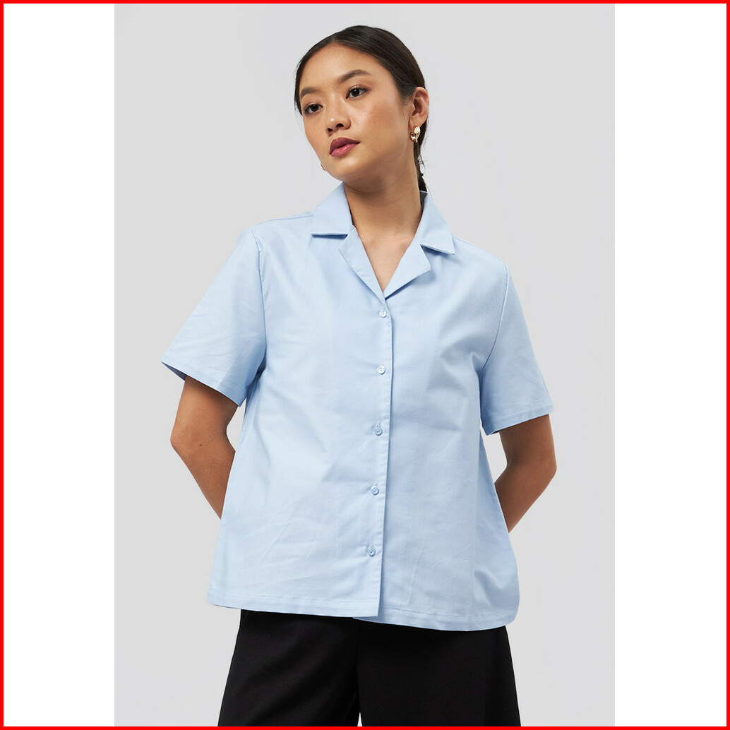 Executive Notch Collar Short Sleeve Blouse Lt. Blue
