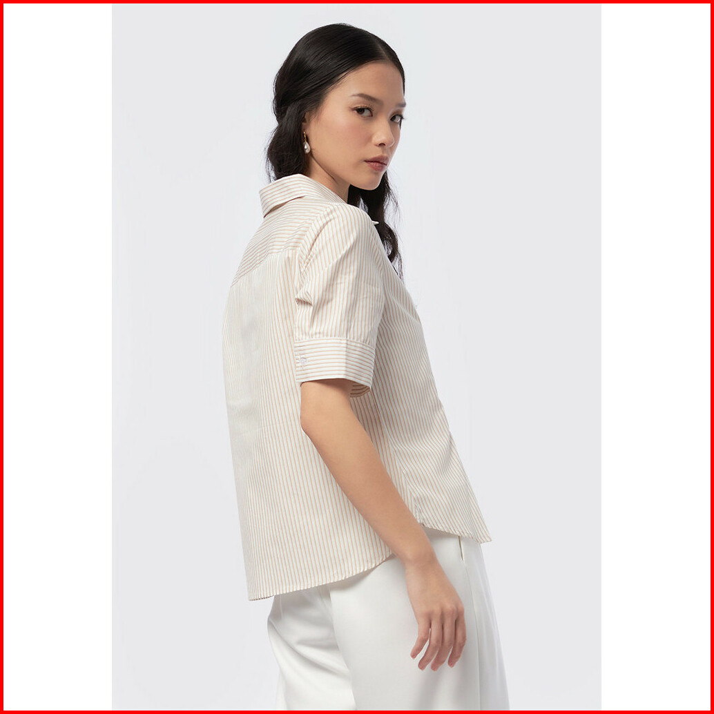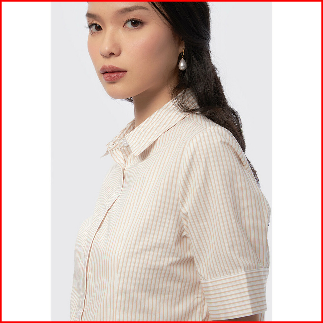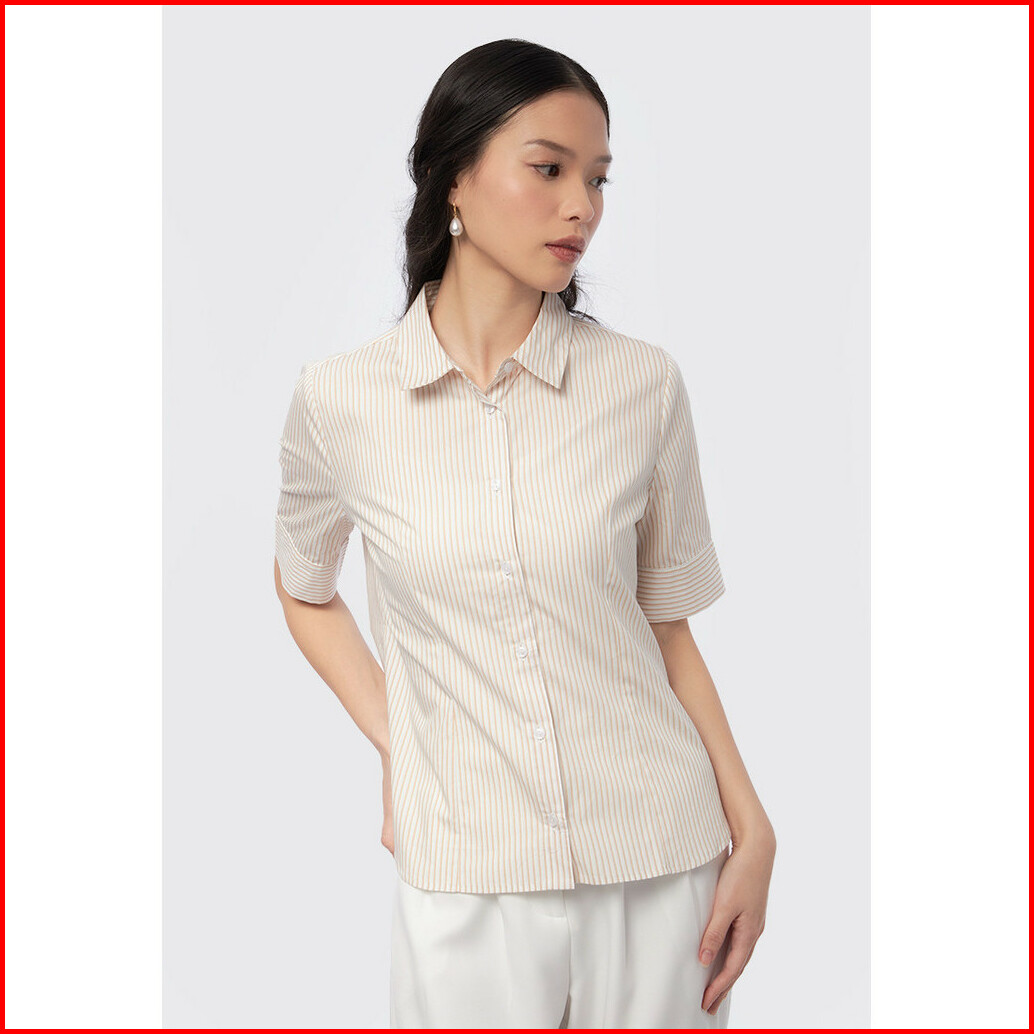 Executive Short Sleeve Stripe Blouse Beige