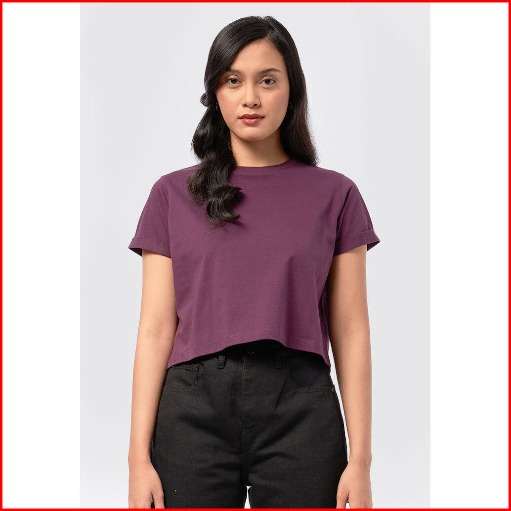 Executive Basic Cropped Cotton T-shirt Plum