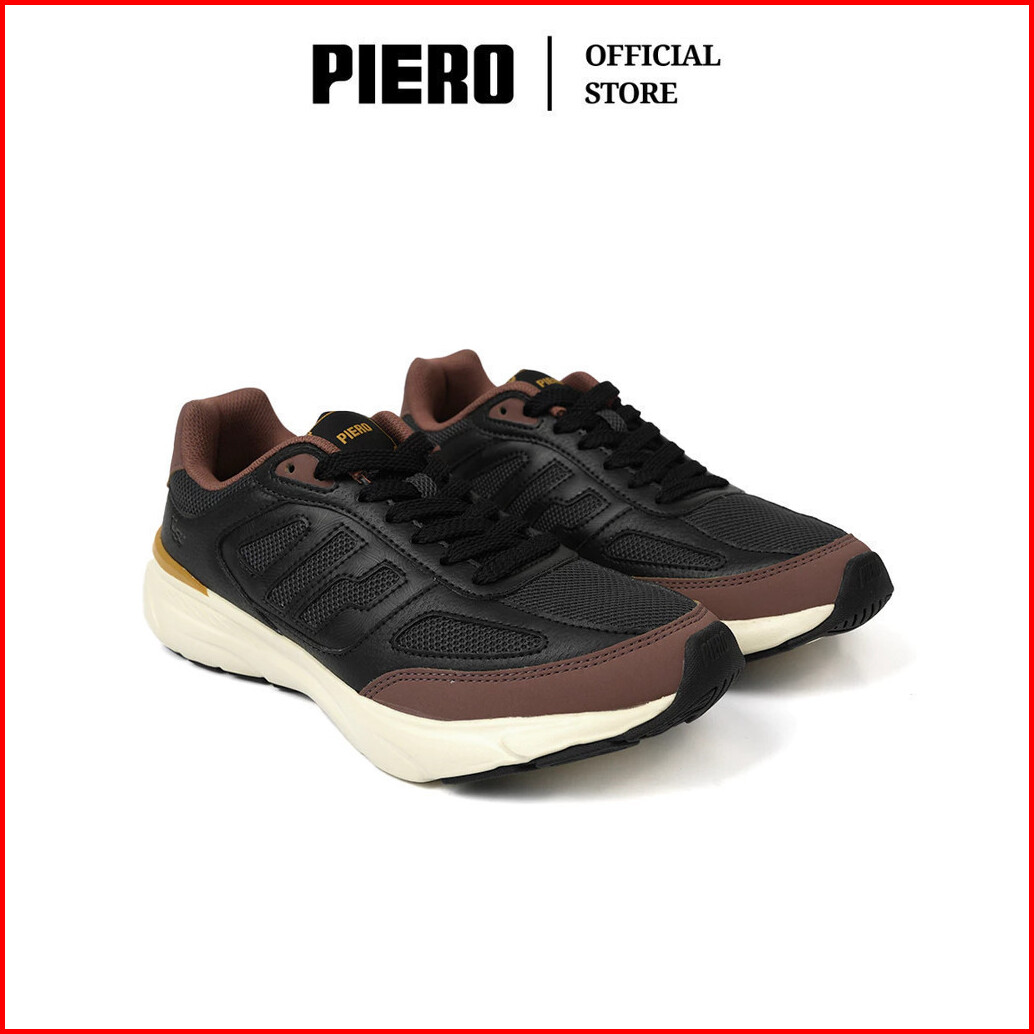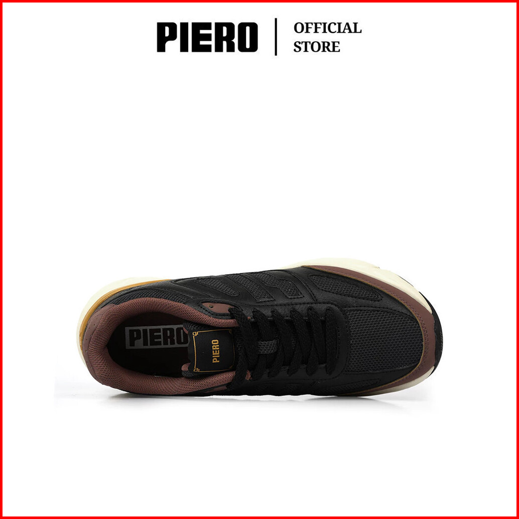 Piero Sepatu Sneakers Pria Jogger V54 Cny Black Dark Grey Off White Pie1000035