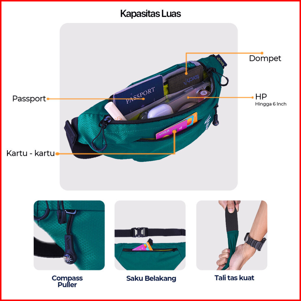Torch Torre Tas Pinggang Selempang Ringan Anti Air Unisex