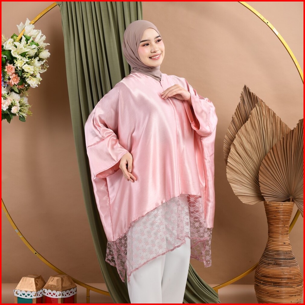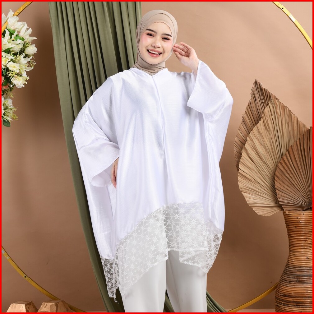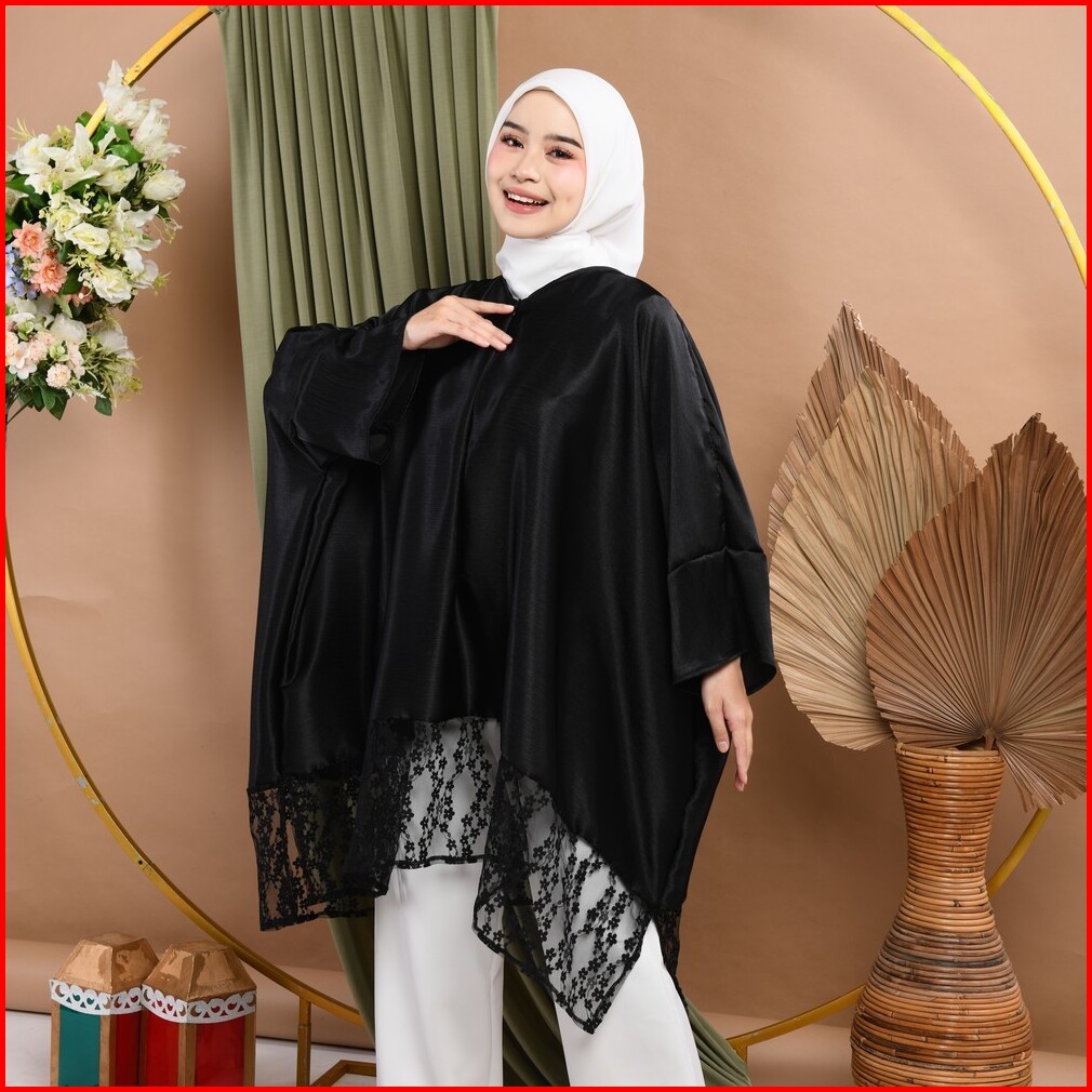 Mybamus Helwa Batwing Kaftan Tops Blouse Mix Lace Oversize Atasan Wanita Kondangan Lebaran Kekinian