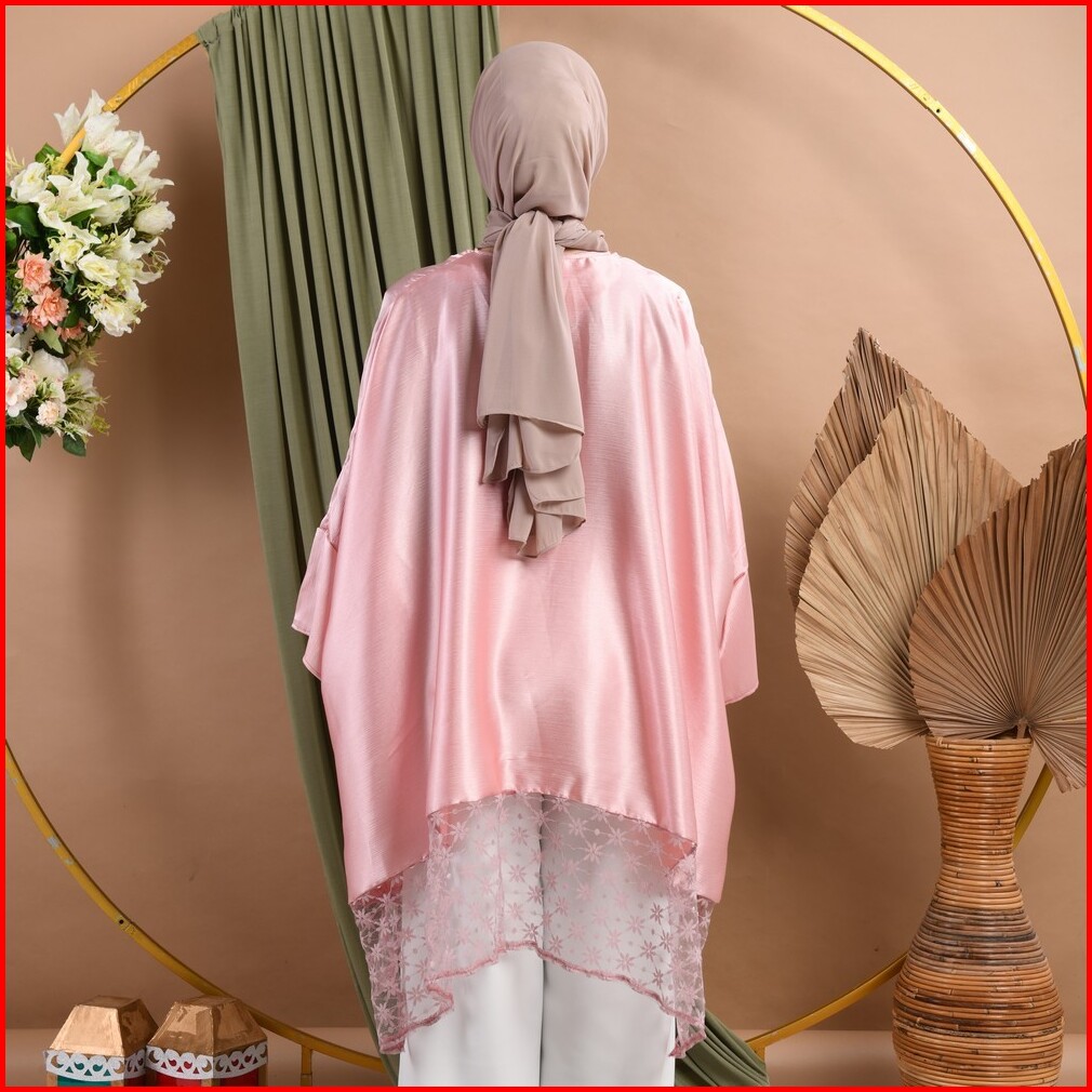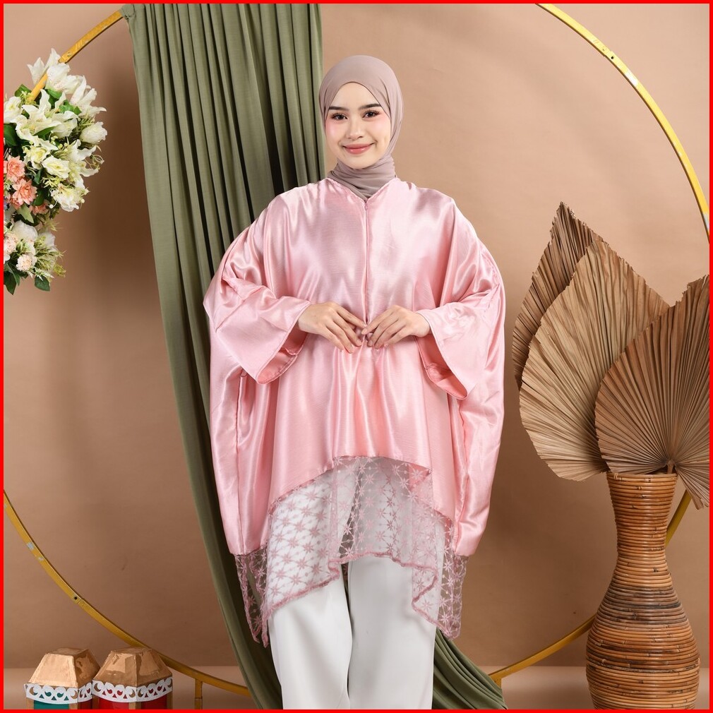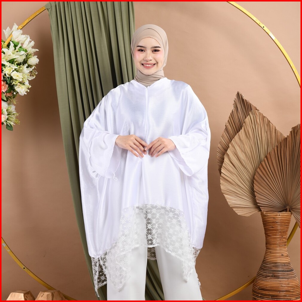Mybamus Helwa Batwing Kaftan Tops Blouse Mix Lace Oversize Atasan Wanita Kondangan Lebaran Kekinian