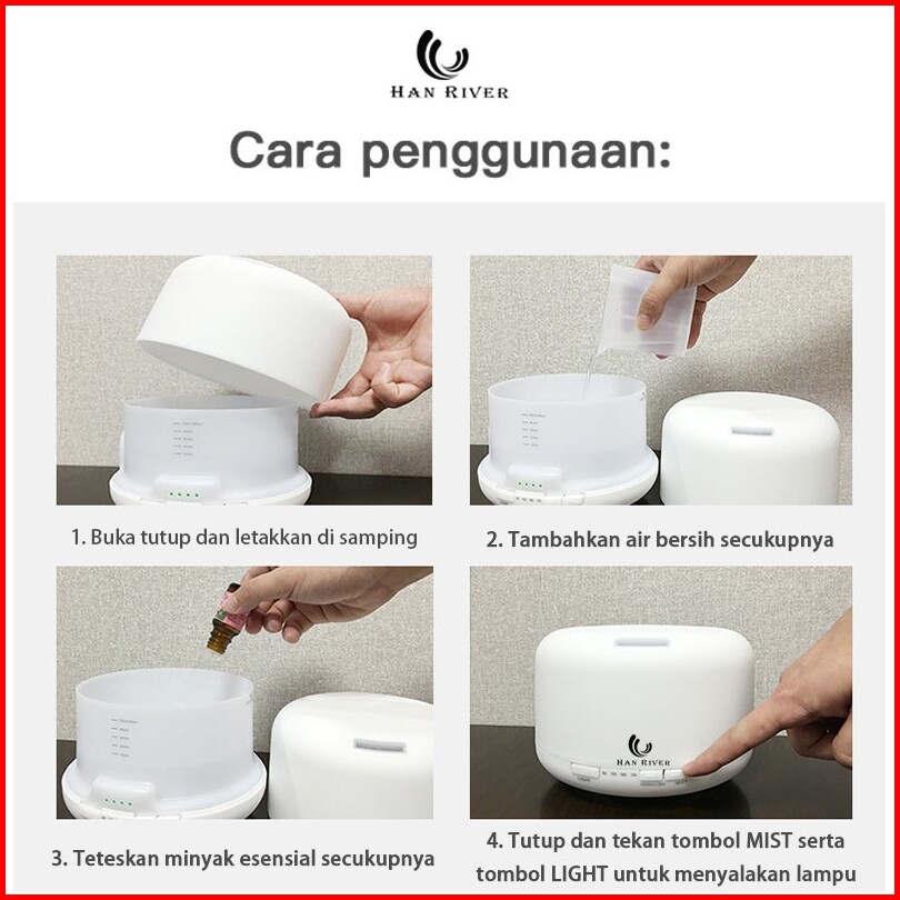 Han River Humidifier Air Ultrasonic Diffuser Aroma Purifier Led 500ml