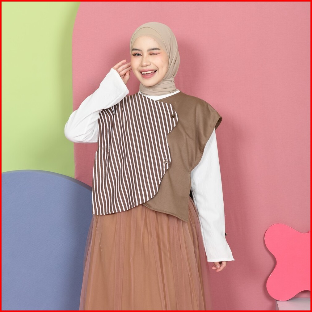 Mybamus Inara Outer Rompi Wanita Kekinian Vest Asimetris Korean Style