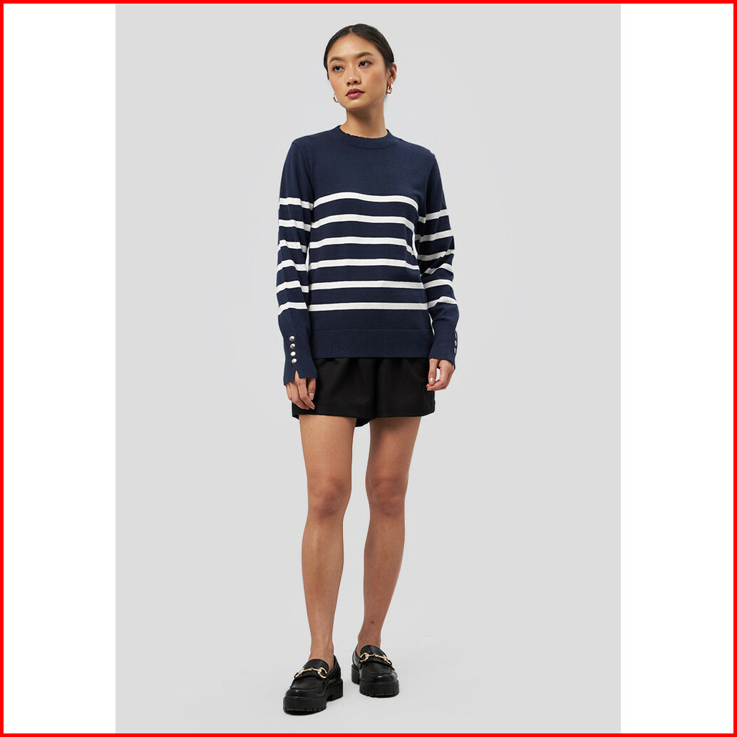 Executive Long Sleeve Stripes Knit Top Navy