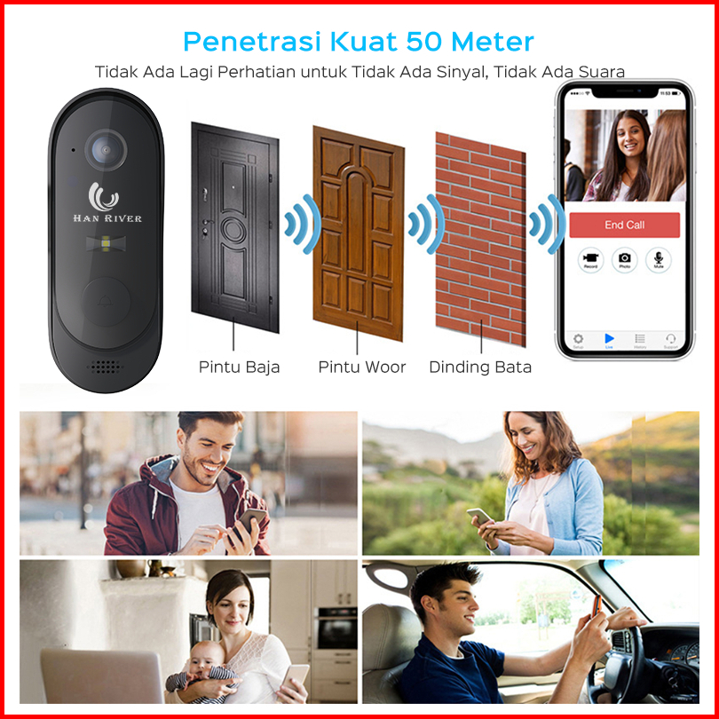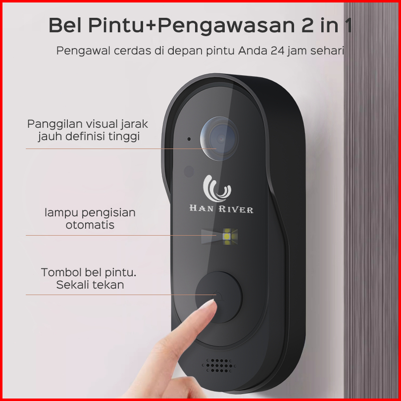 Han River Bel Rumah Tanpa Kabel Wifi Video Doorbell Bel Pintu Pintar Digital With App