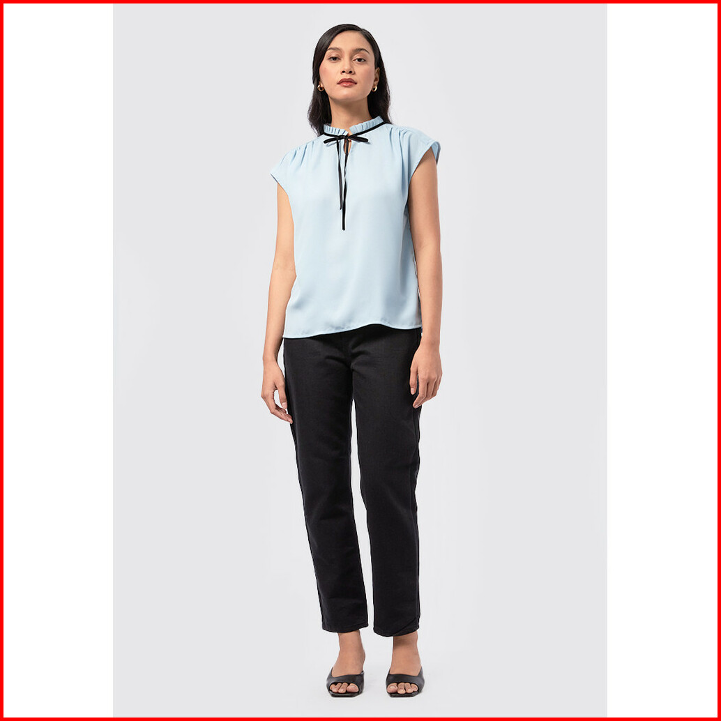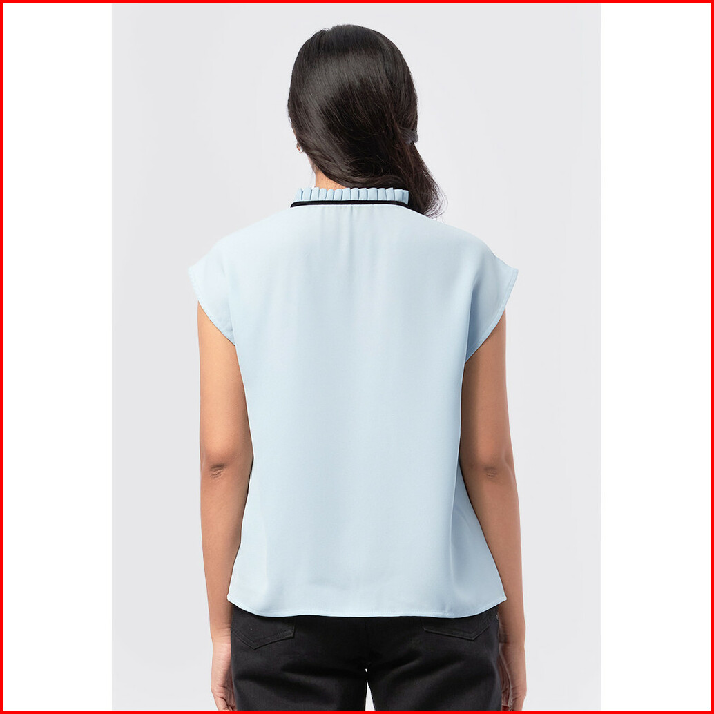 Executive Sleeveless Top With Tie Details Lt. Blue
