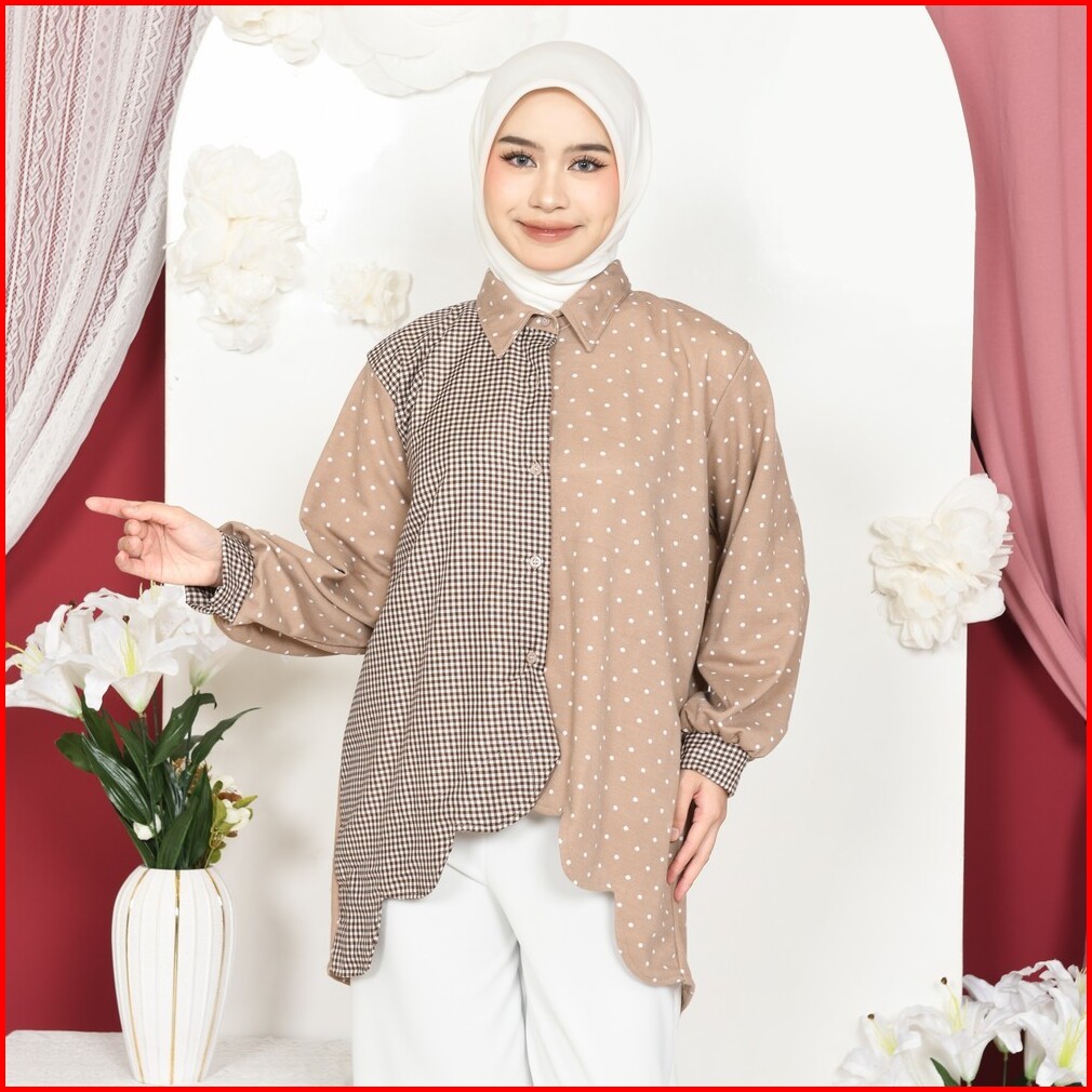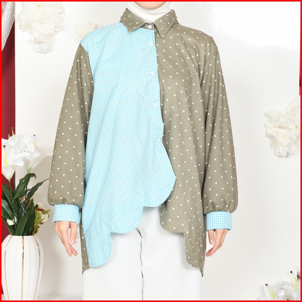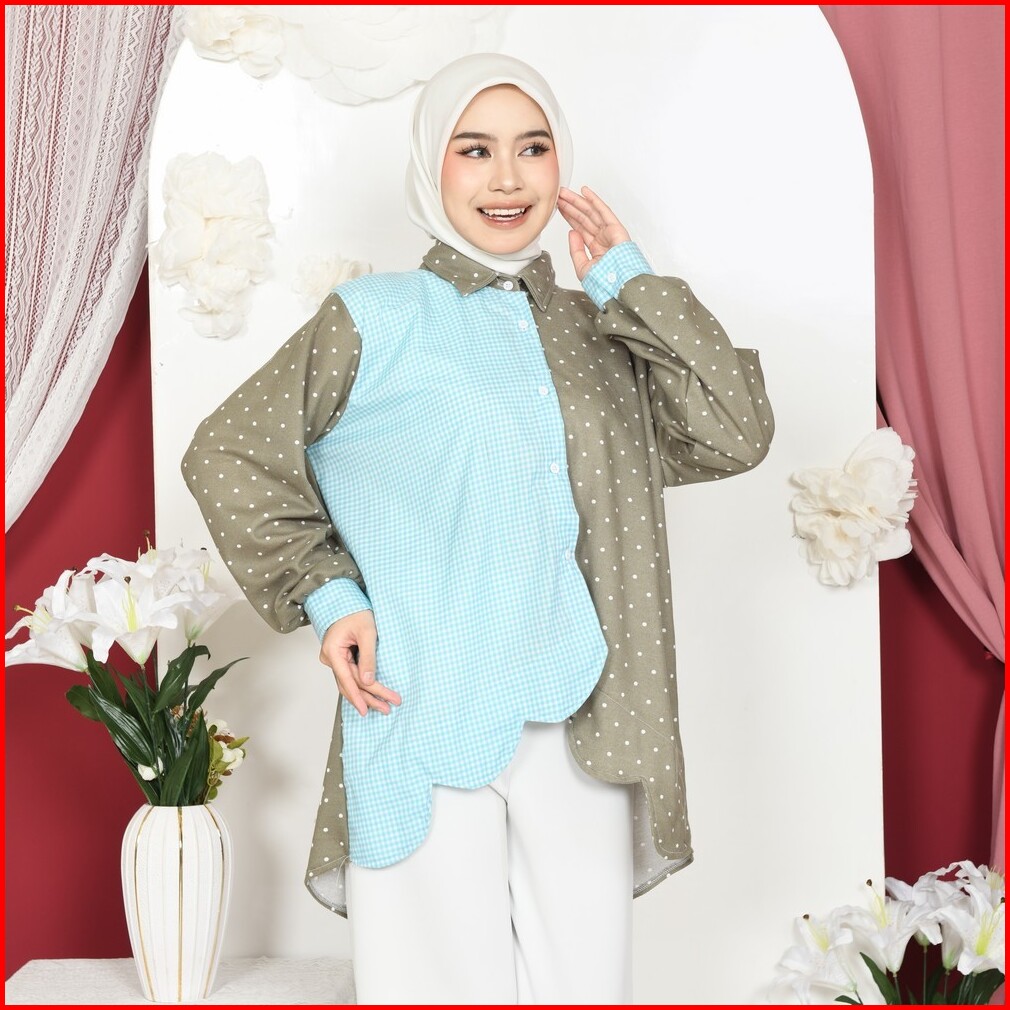 Mybamus Vano Kemeja Kombinasi Wanita Lengan Panjang Kekinian Atasan Busui