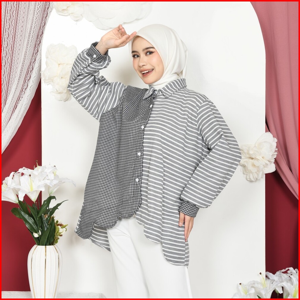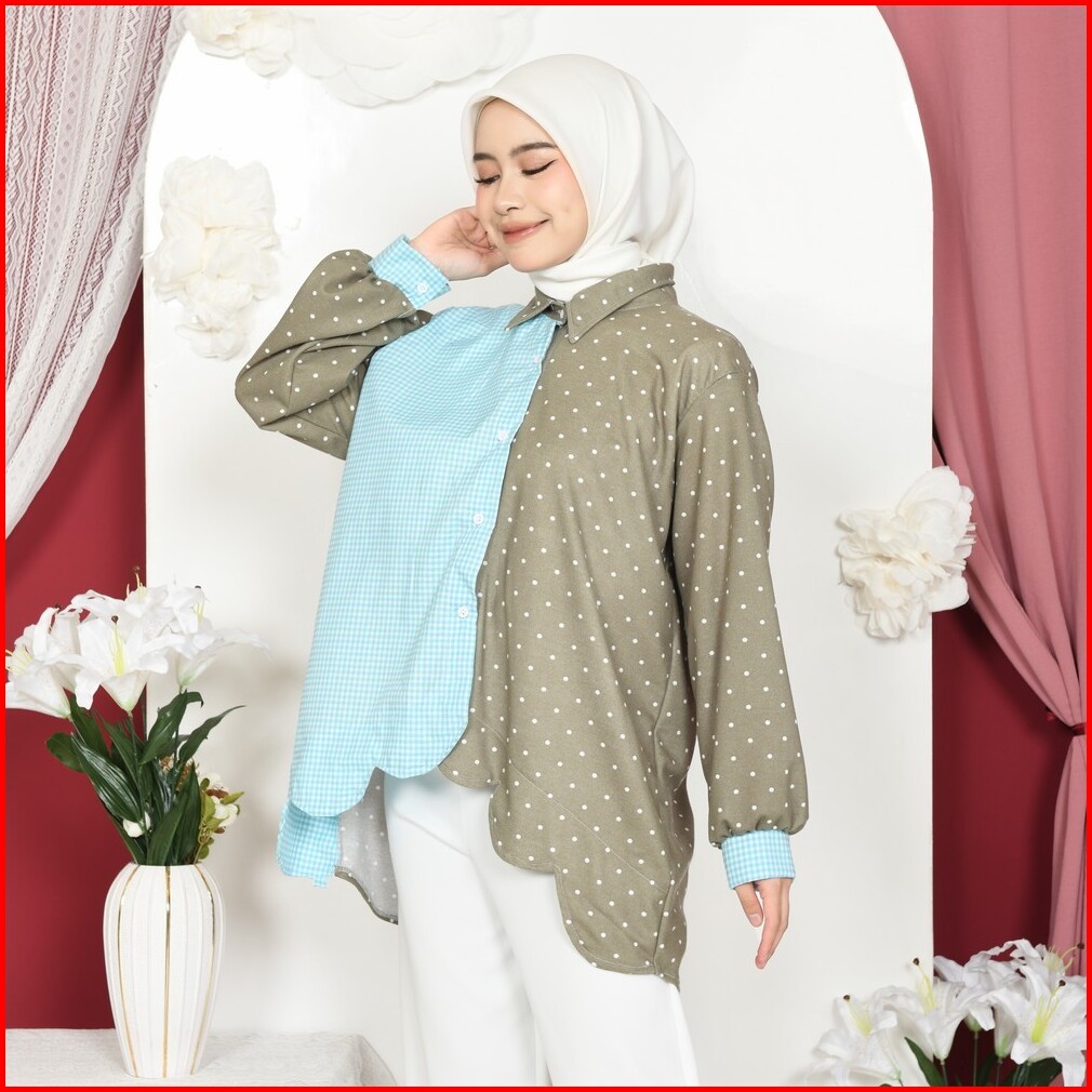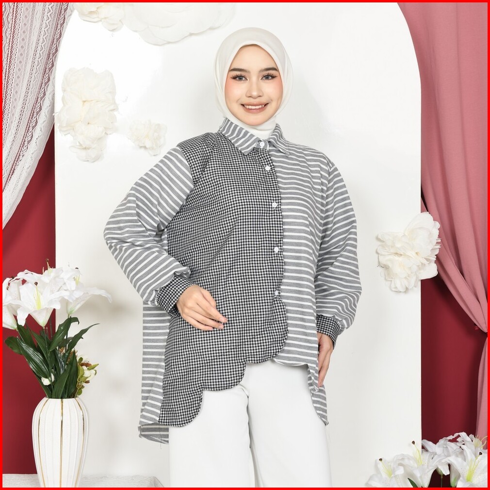 Mybamus Vano Kemeja Kombinasi Wanita Lengan Panjang Kekinian Atasan Busui