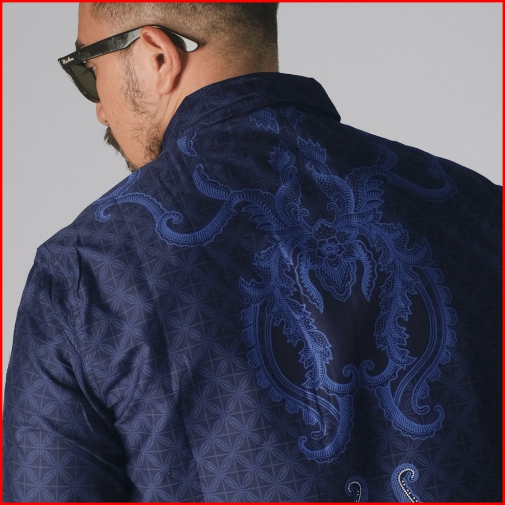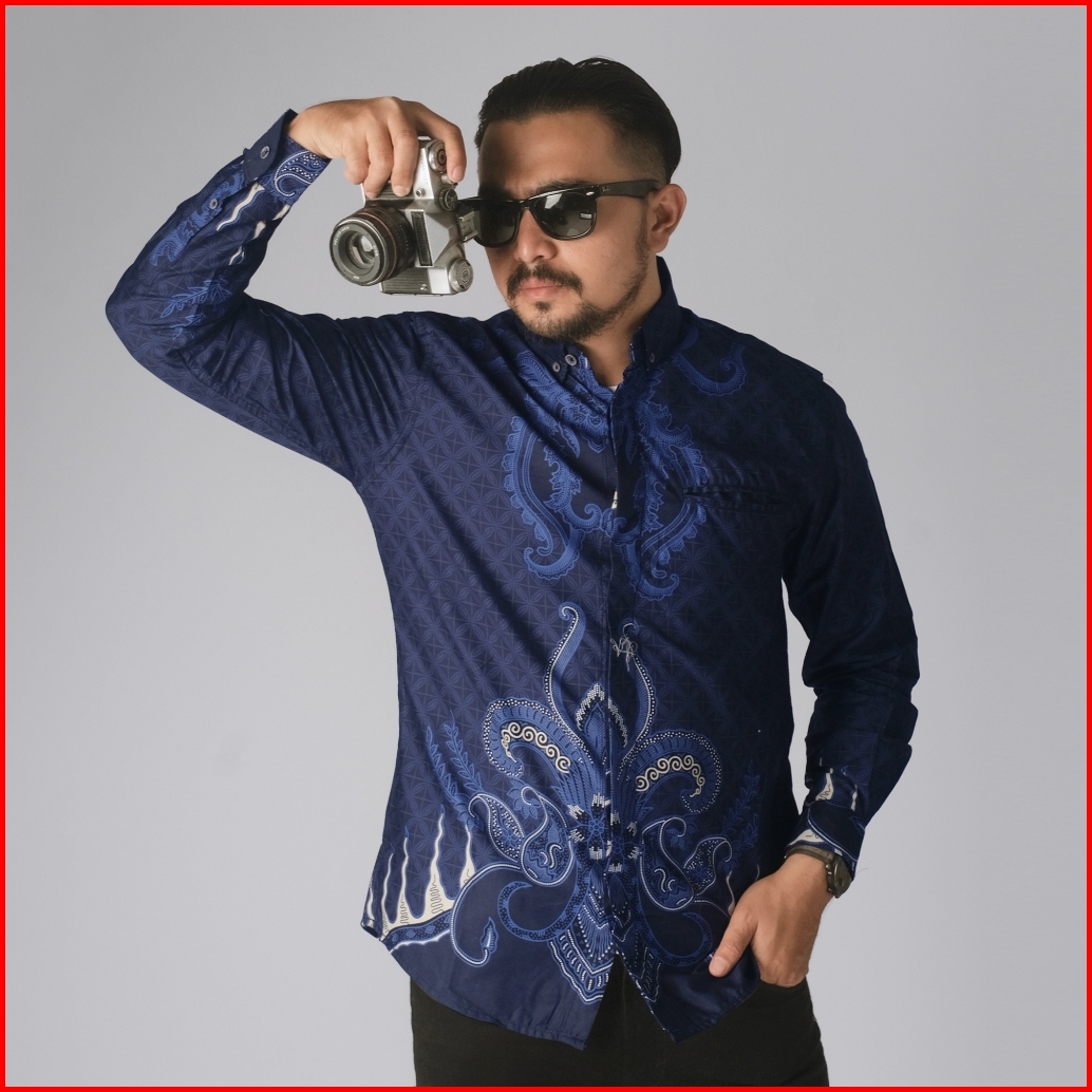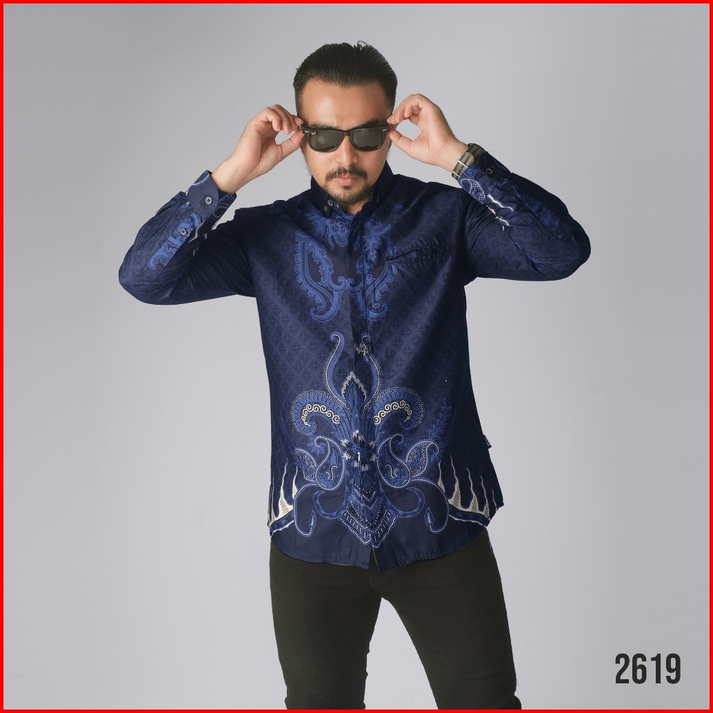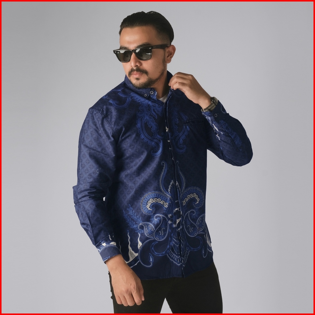 Dgm Kemeja Batik Pria Panjang Lapis Furing Premium Batik Puring Akar Biru Navy 2619