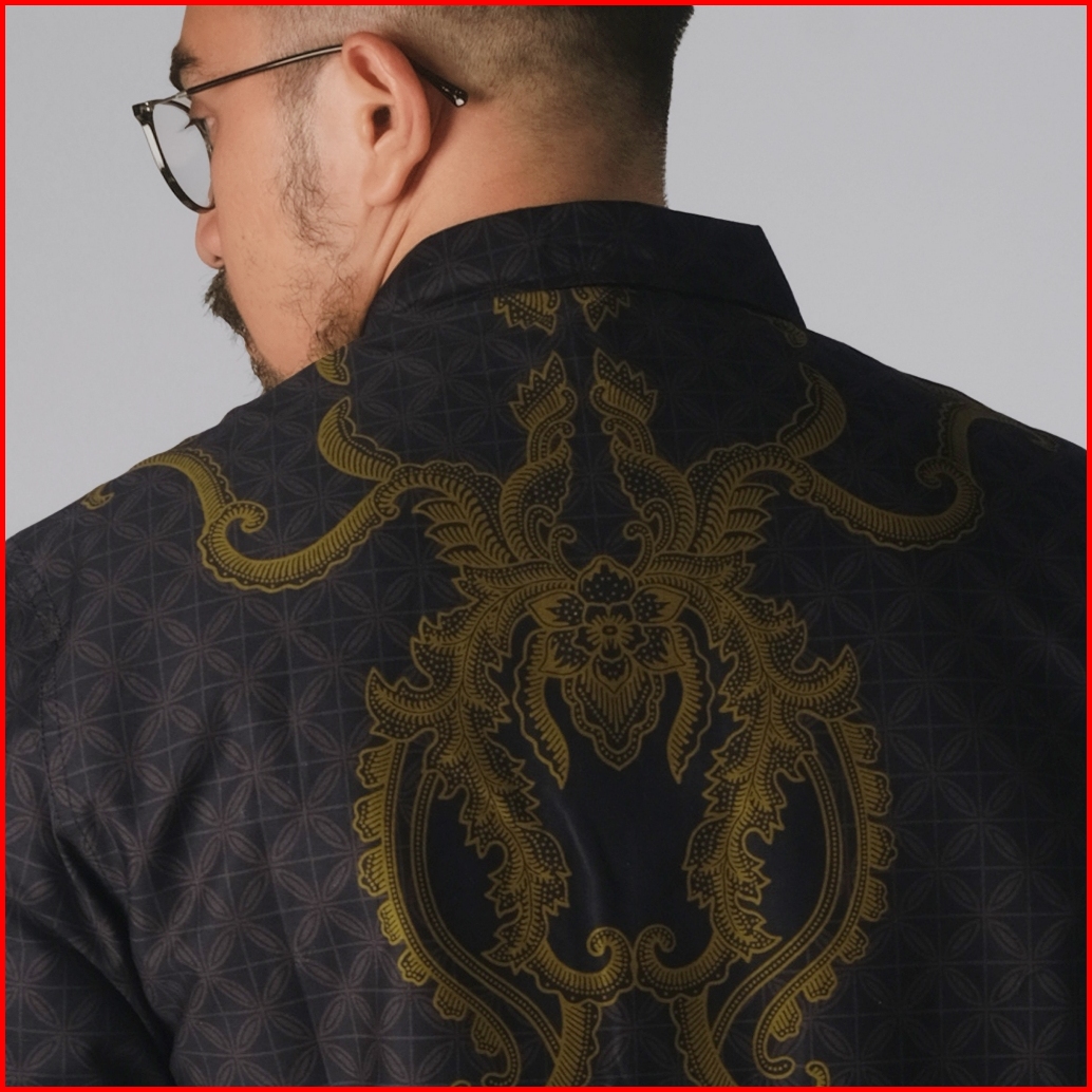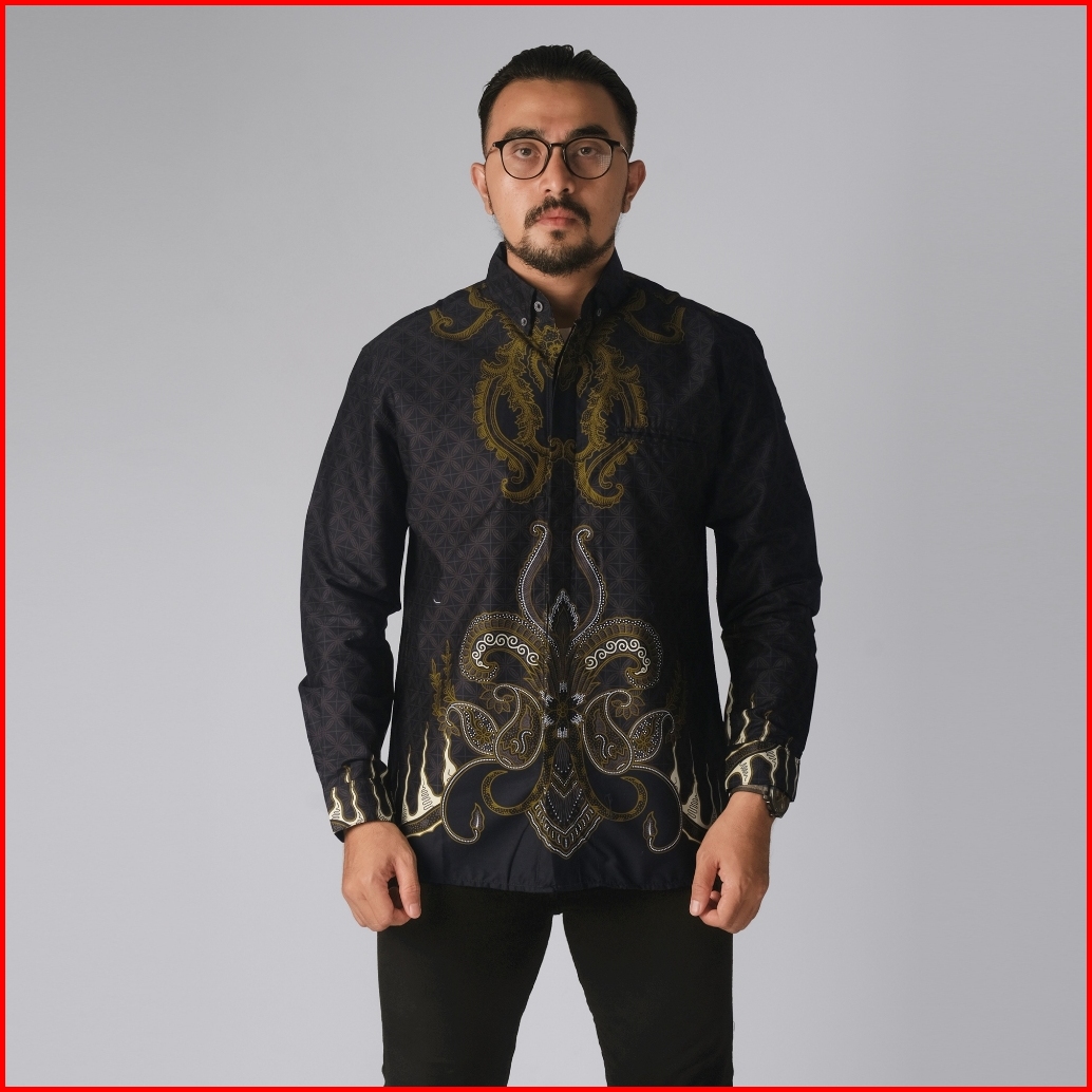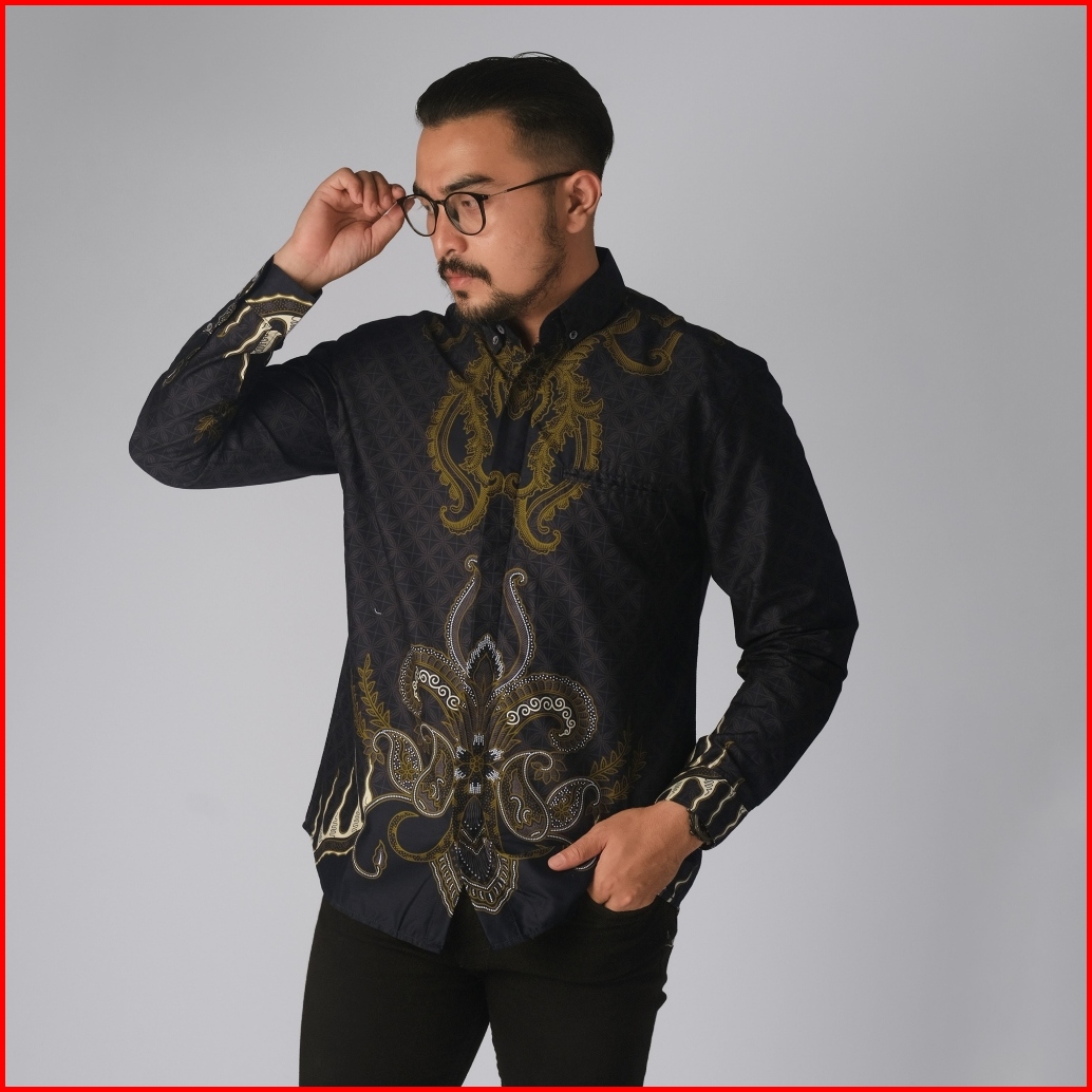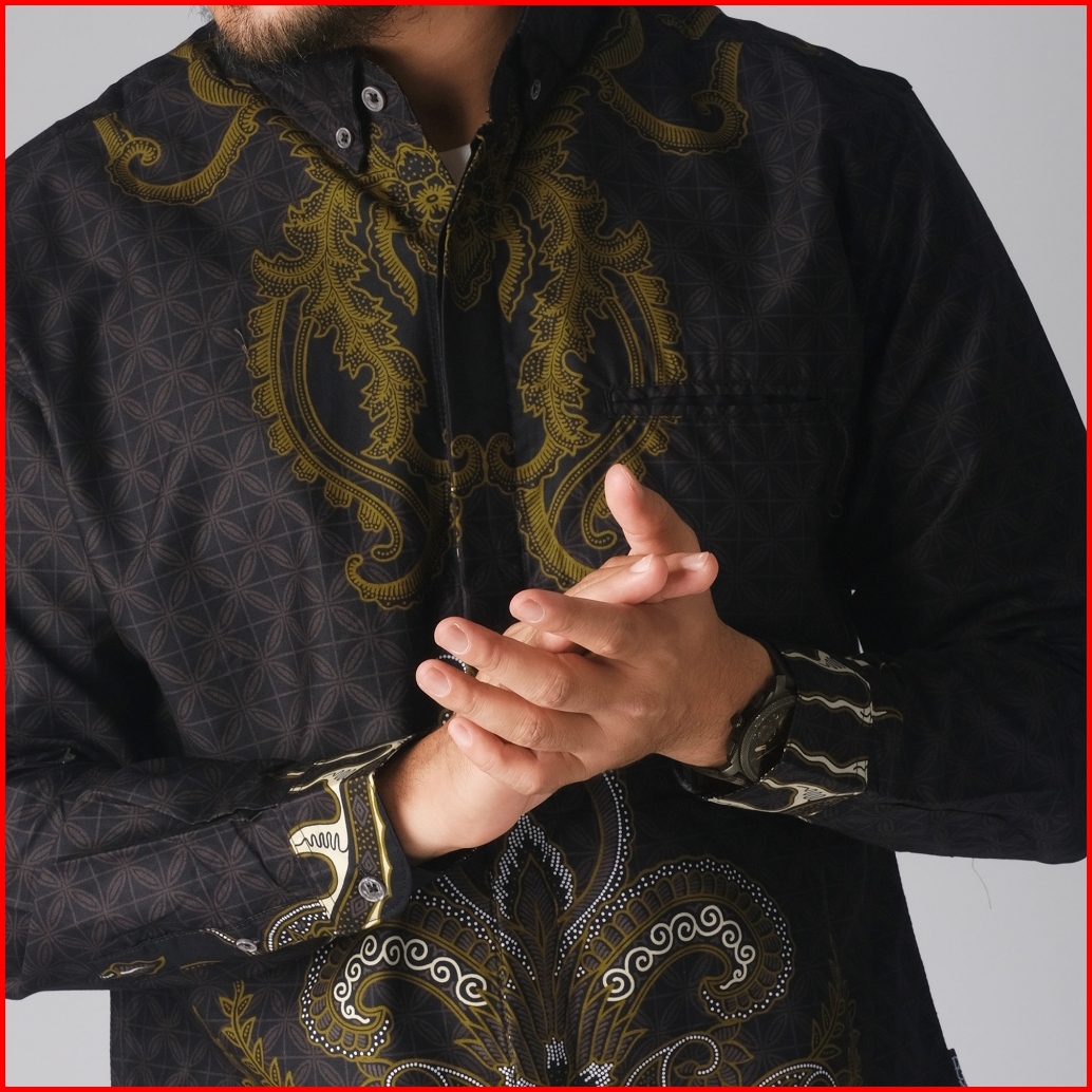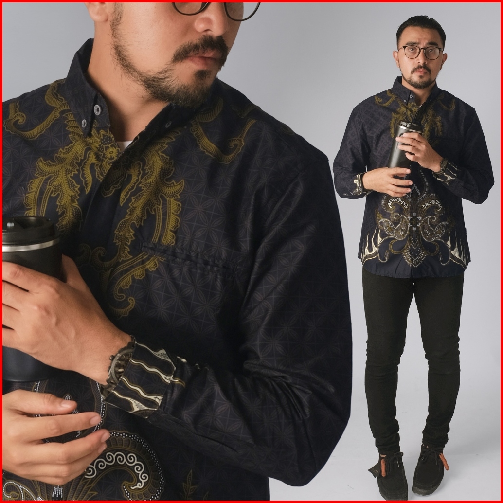 Dgm Kemeja Batik Pria Panjang Lapis Furing Premium Batik Puring Hitam Motif Akar Hijau 2621