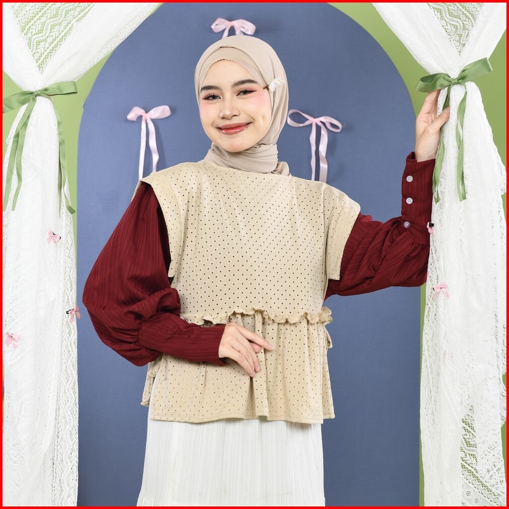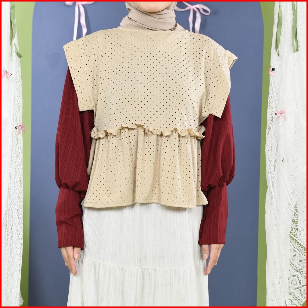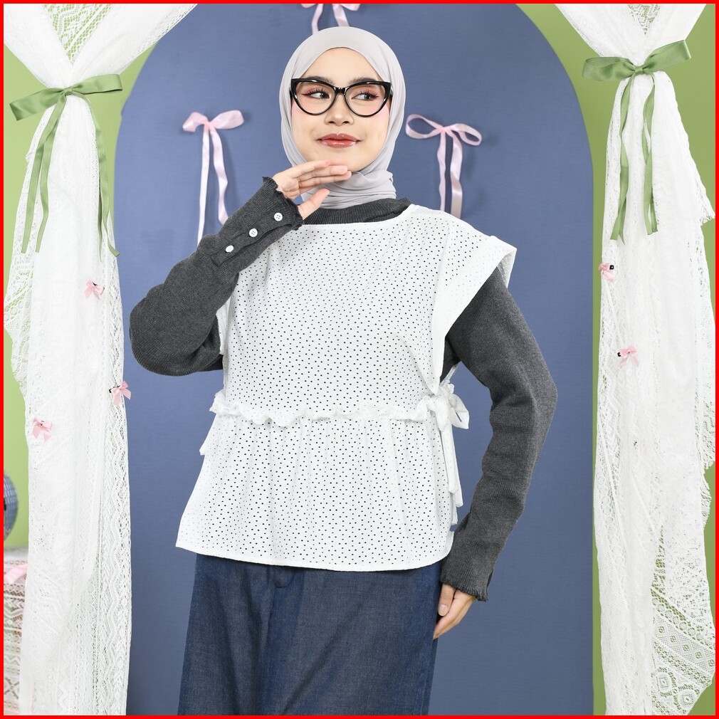 Mybamus Arin Ruffle Vintage Vest Korean Style Outer Lace Lebaran Terbaru
