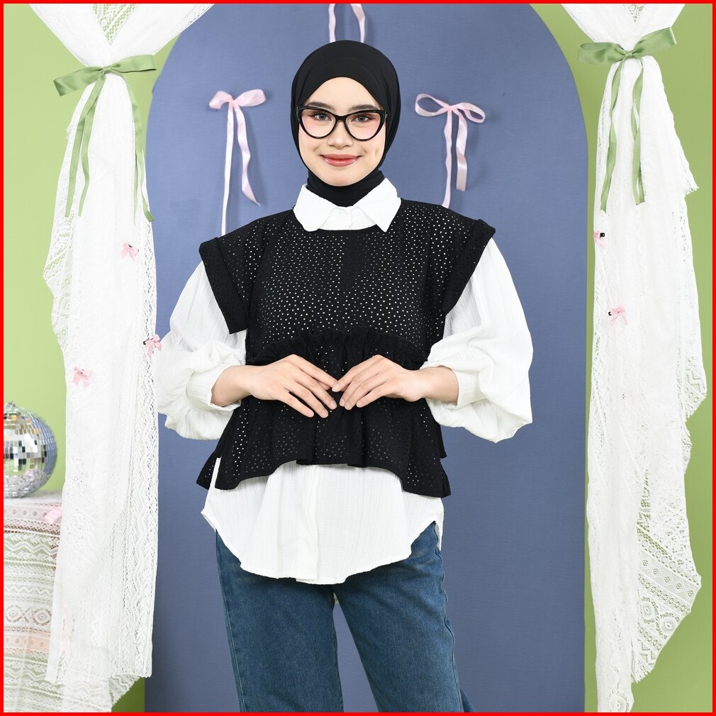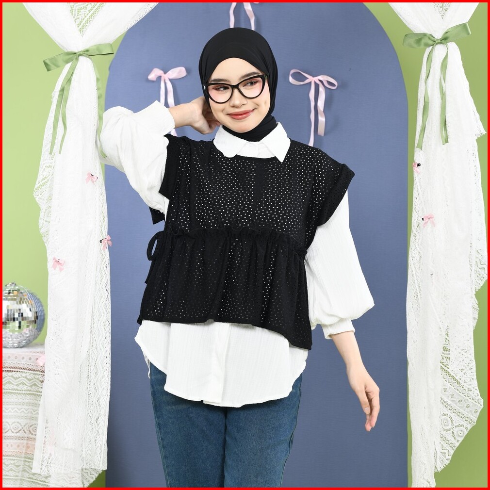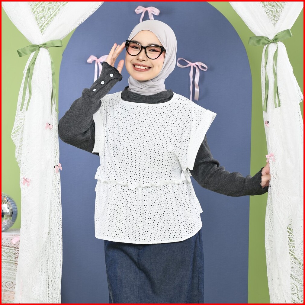 Mybamus Arin Ruffle Vintage Vest Korean Style Outer Lace Lebaran Terbaru