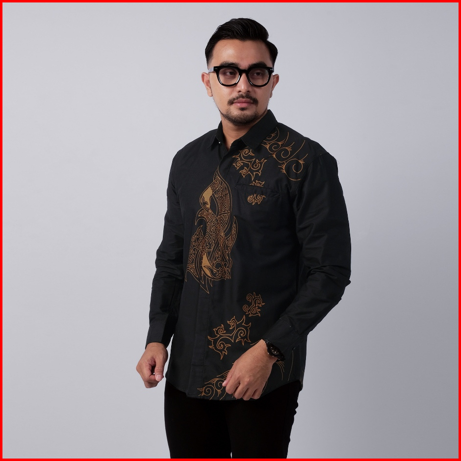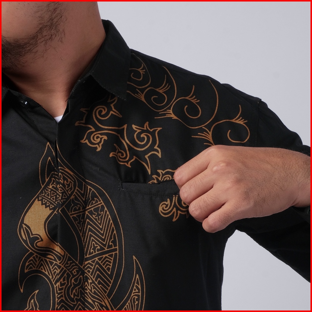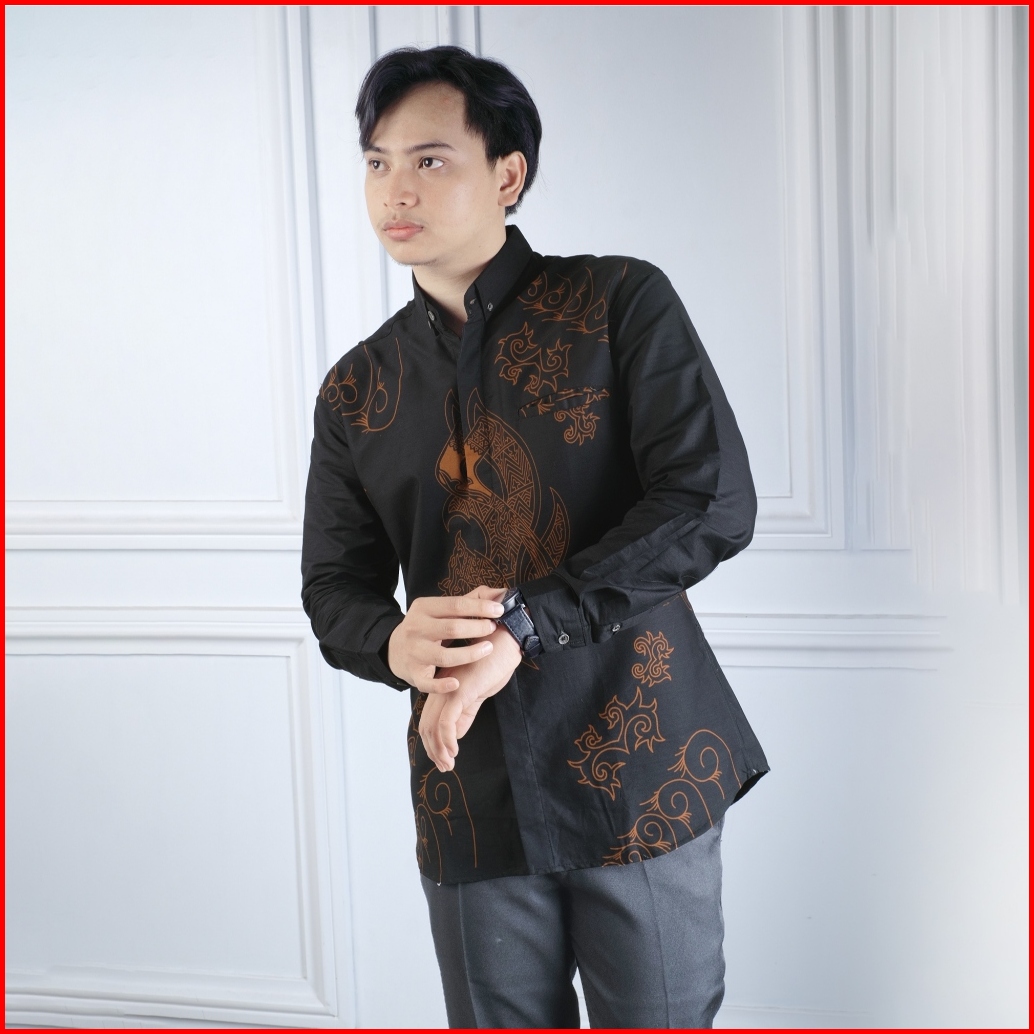 Dgm Kemeja Batik Pria Lengan Panjang Premium Hitam Coklat 1336