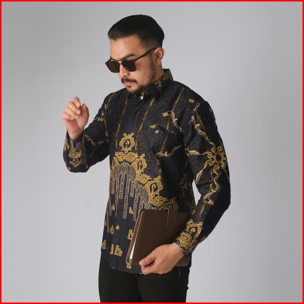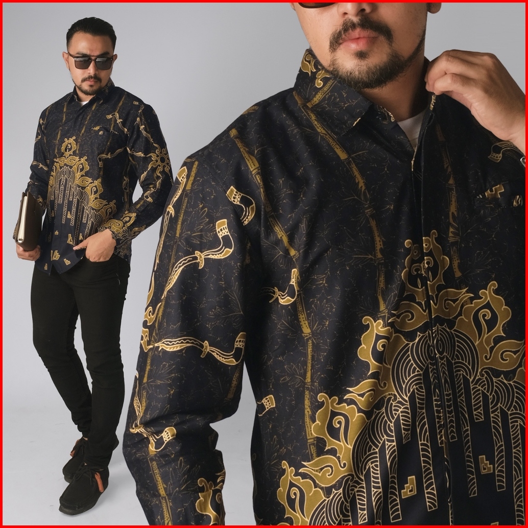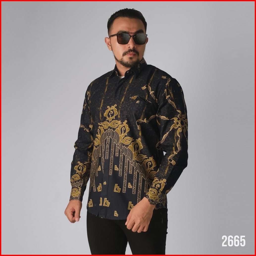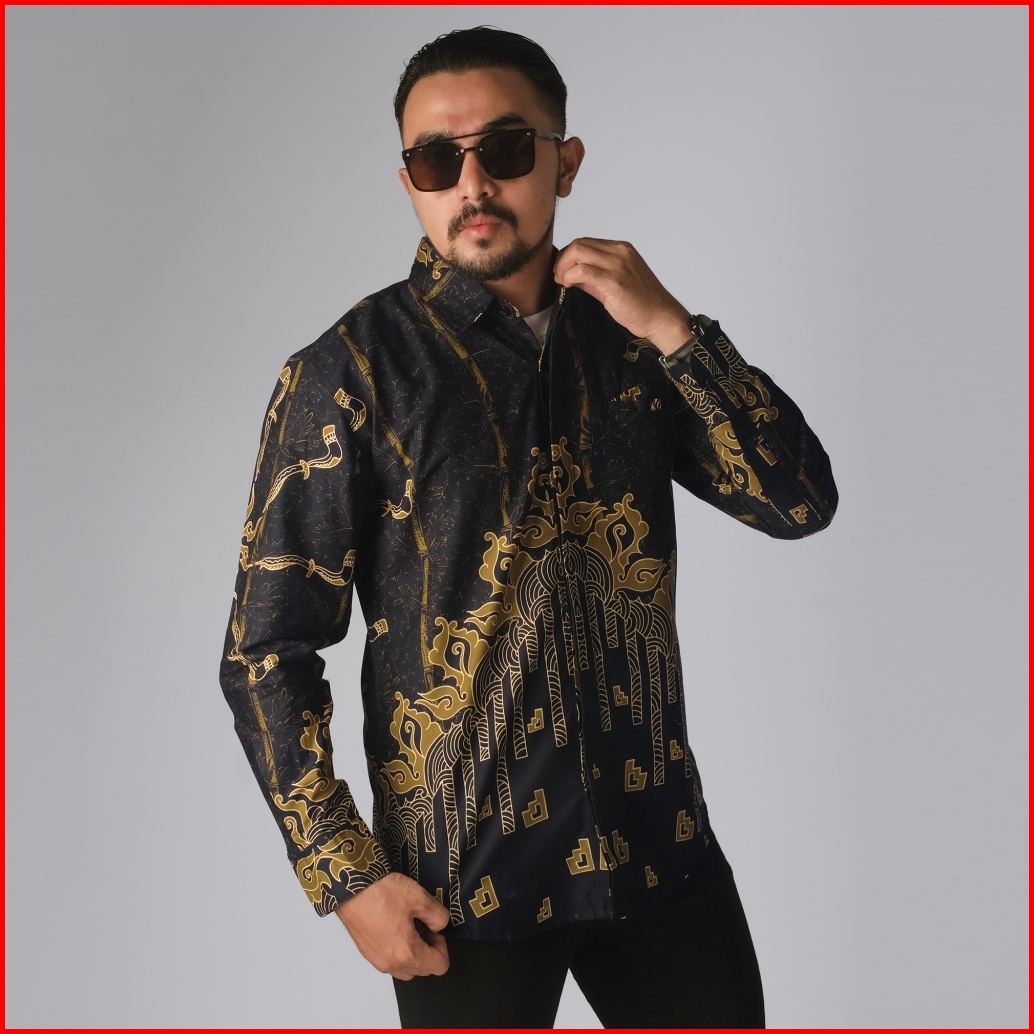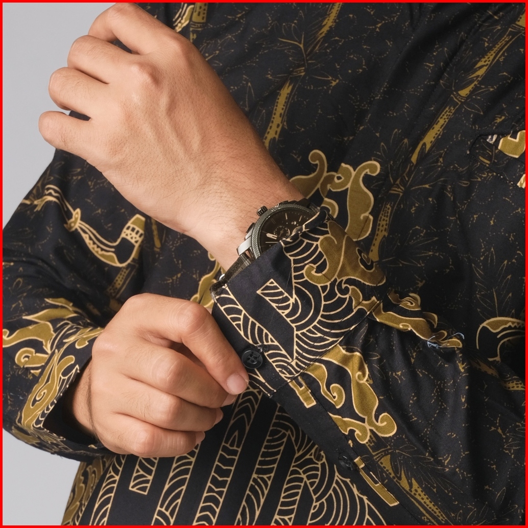 Dgm Kemeja Batik Pria Panjang Lapis Furing Premium Batik Puring Matahari Hitam 2665
