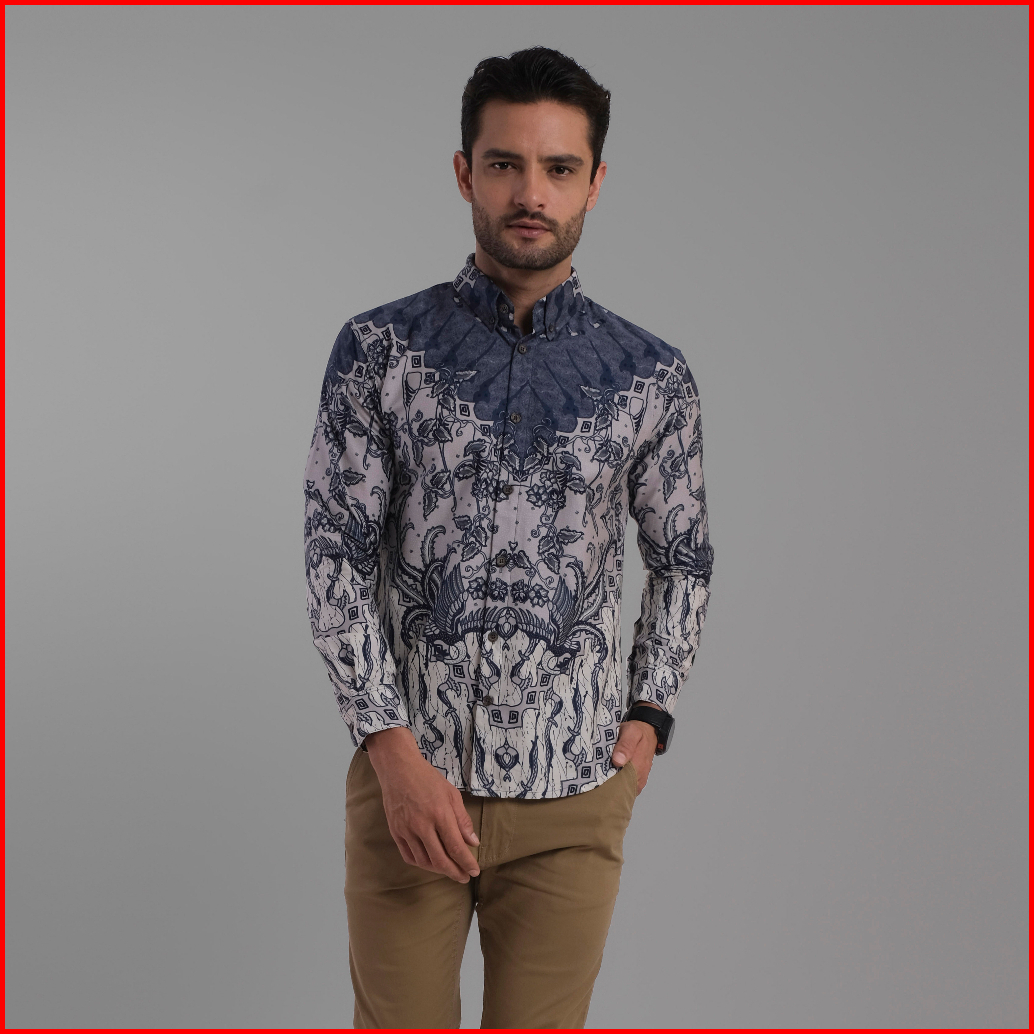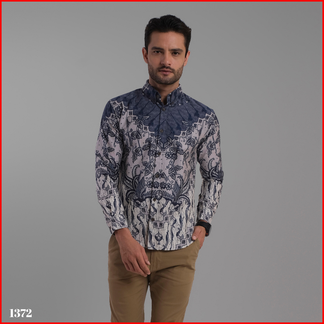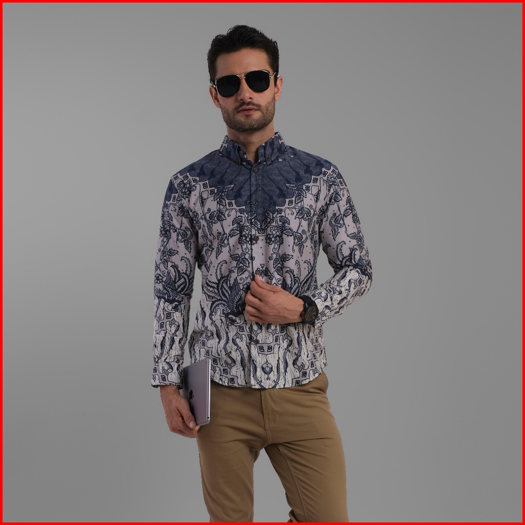 Dgm Kemeja Batik Pria Lengan Panjang Biru 1372