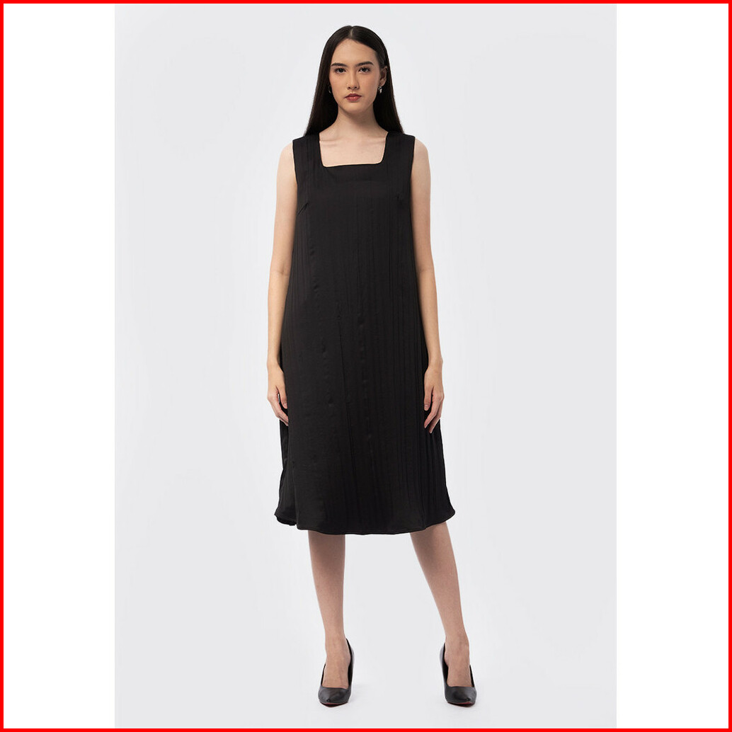 Executive Sleeveless Satin Crinkle Dress Black