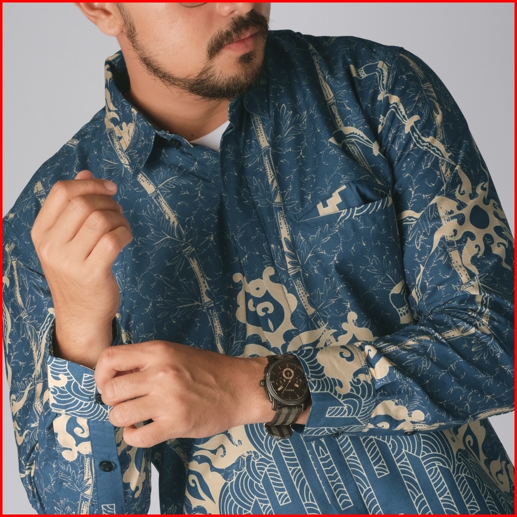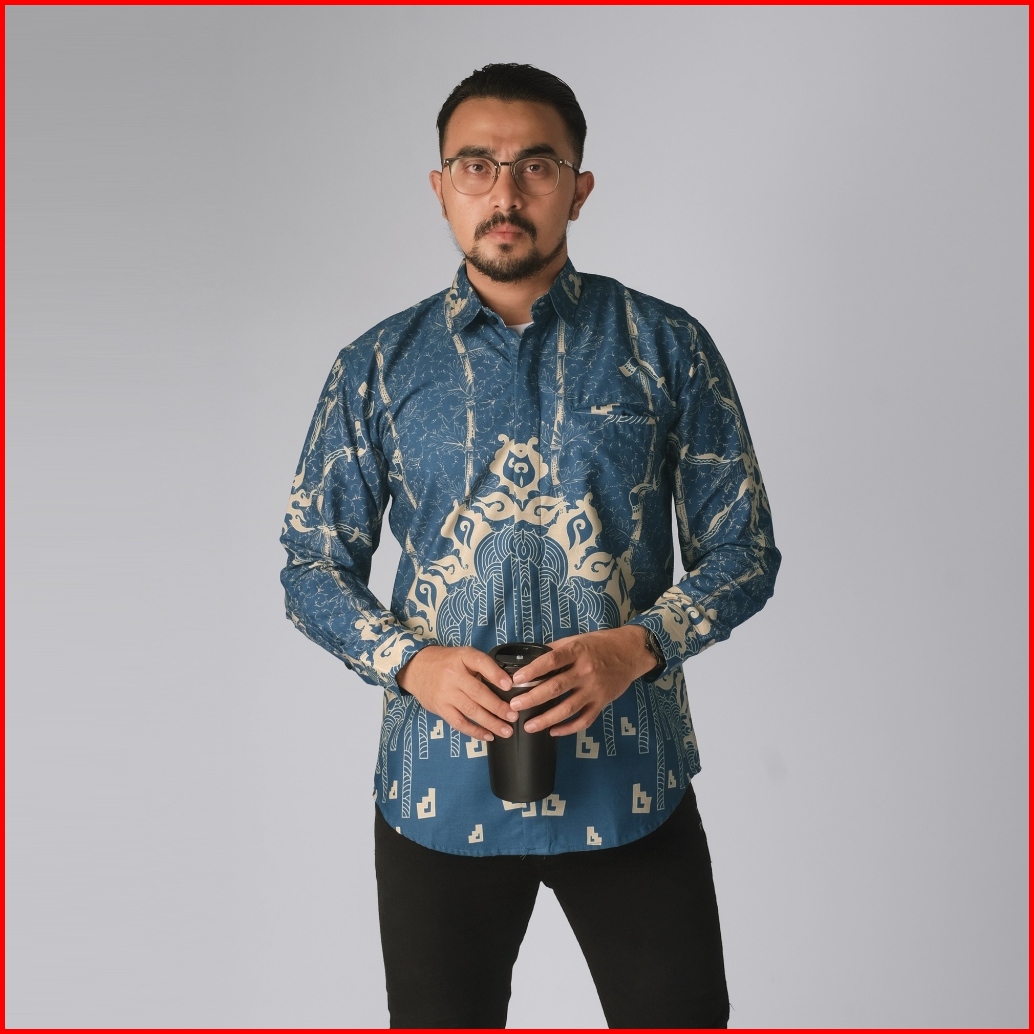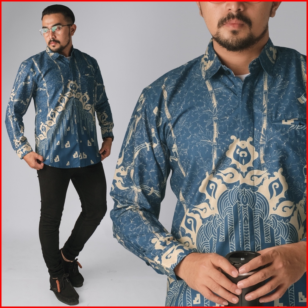 Dgm Kemeja Batik Pria Panjang Lapis Furing Premium Batik Puring Matahari Cream-biru 2666