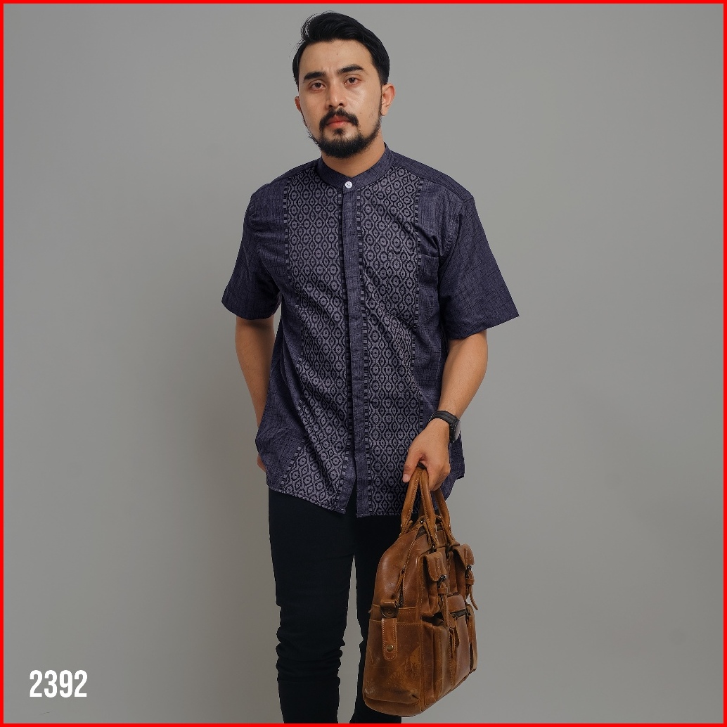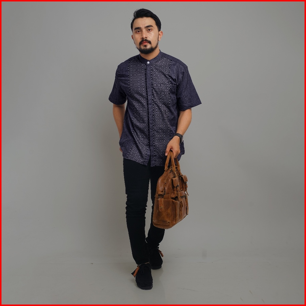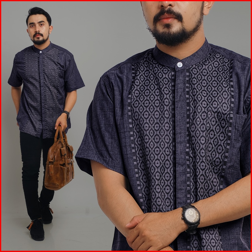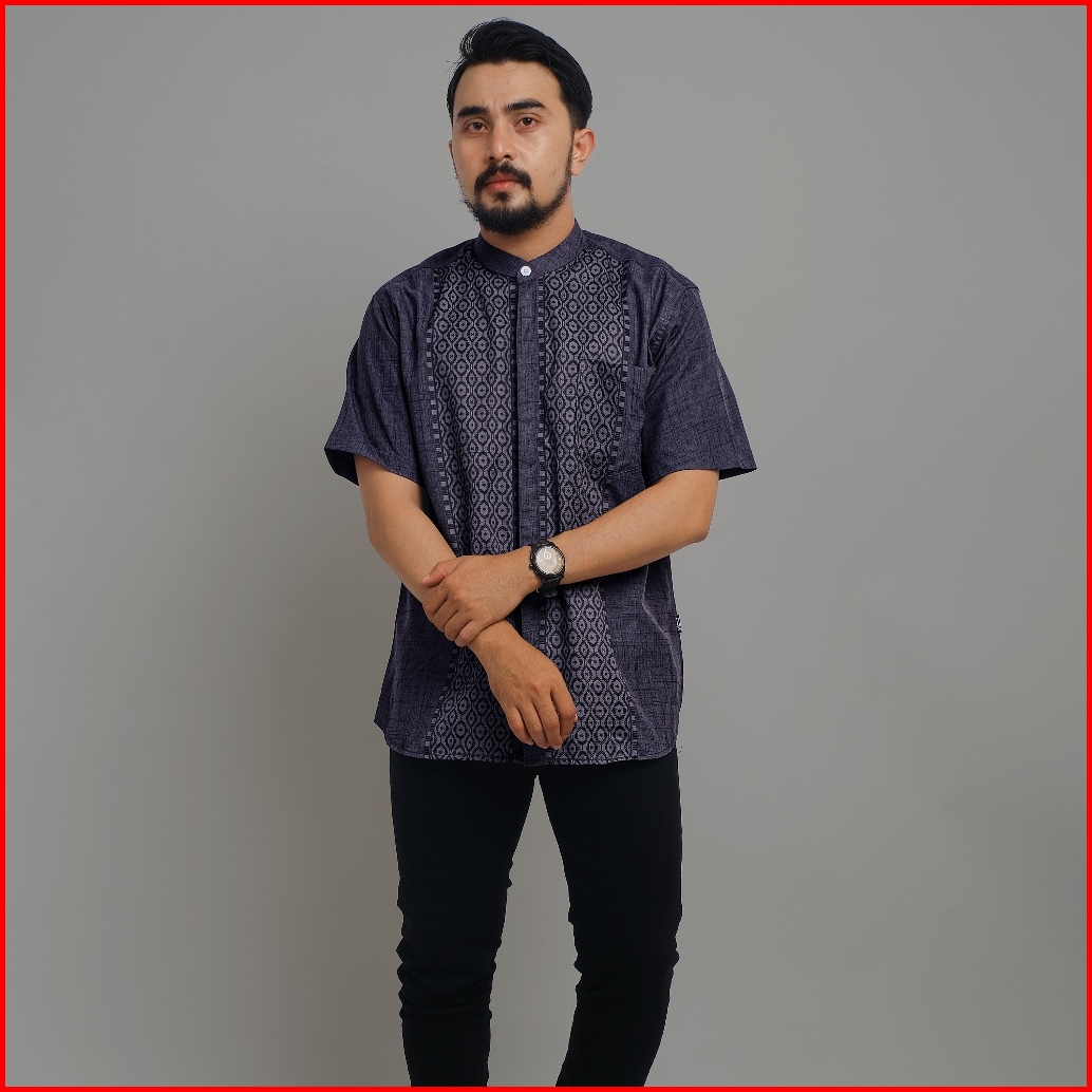 Dgm Kemeja Pria Koko Mulberry Bordir Lengan Pendek Motif Argyle Lingkaran 2392