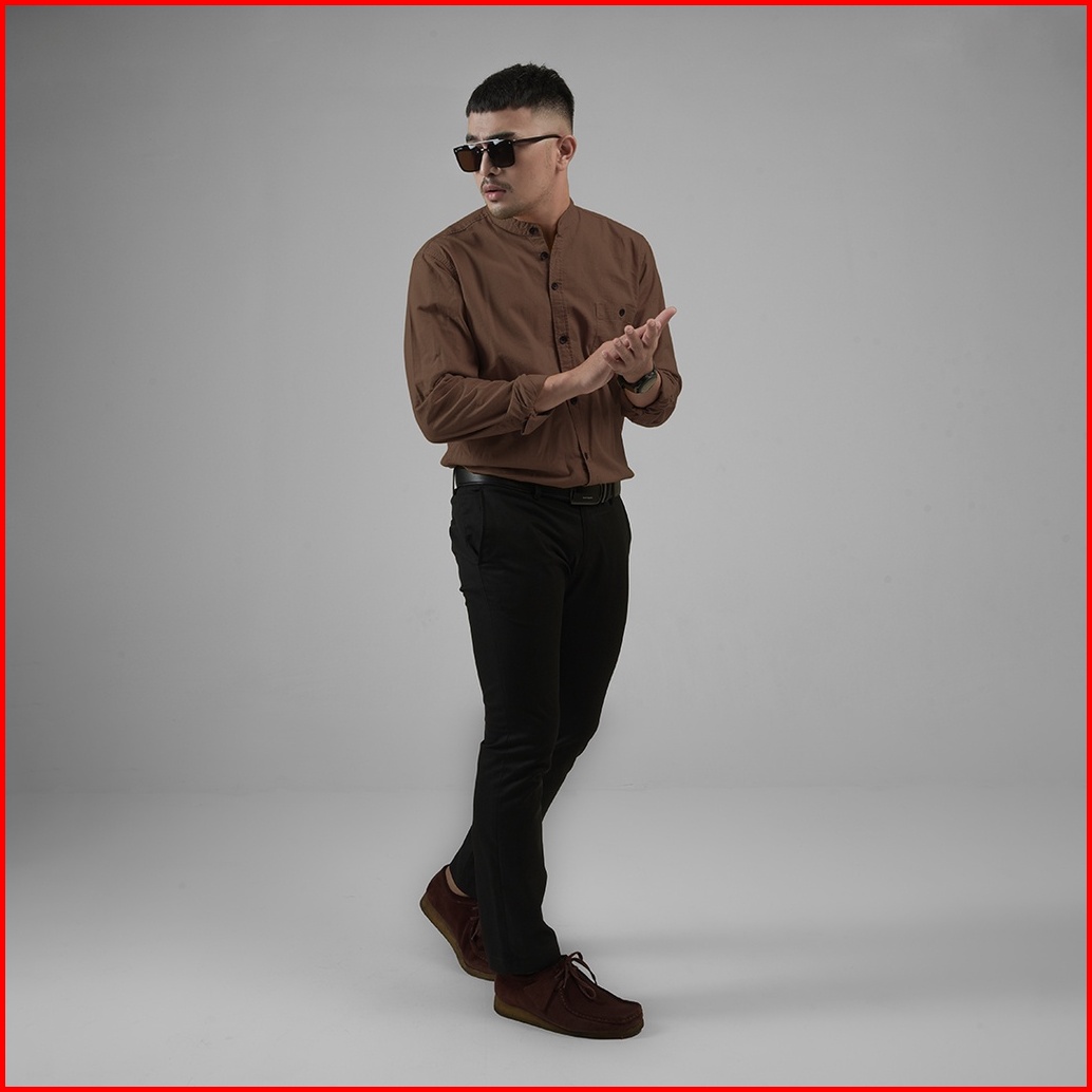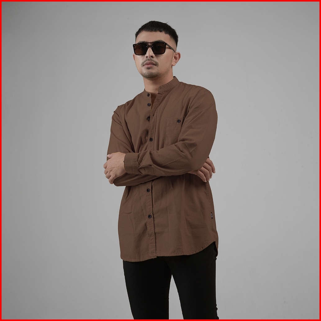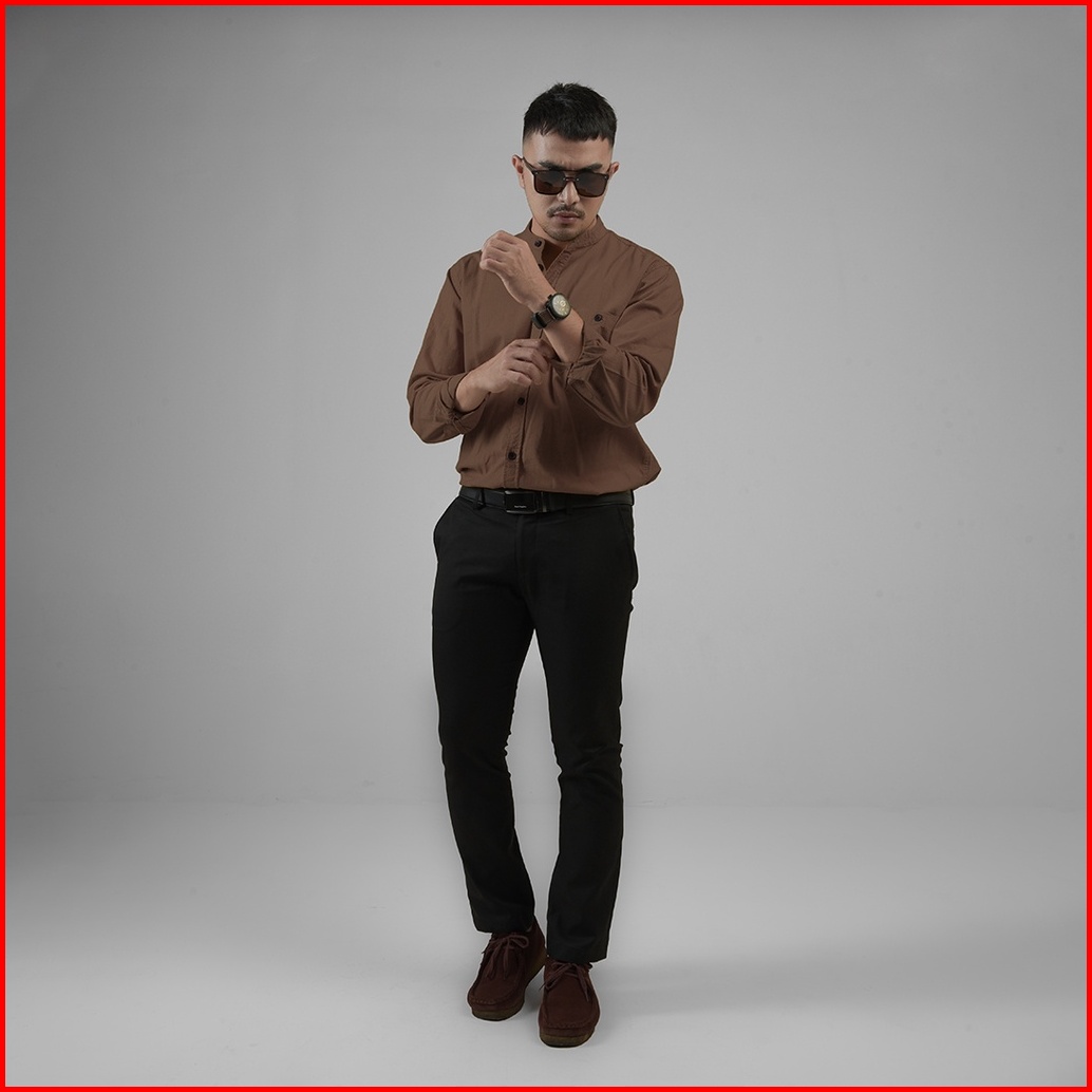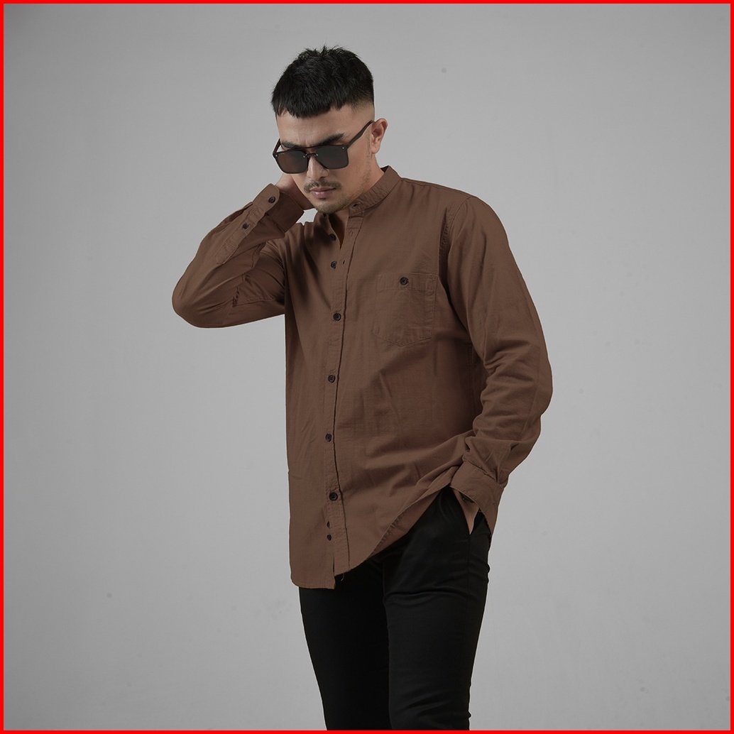 Dgm Kemeja Sanghai Pria Polos Lengan Panjang Brown 1036