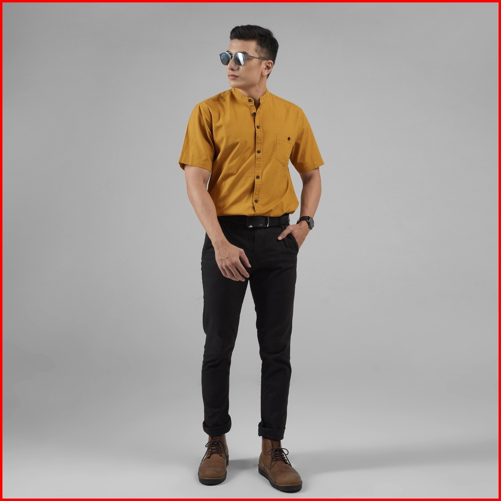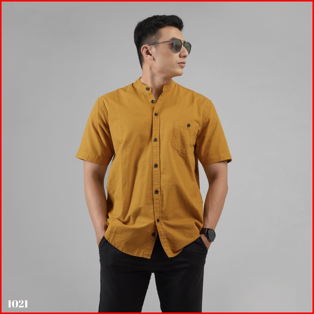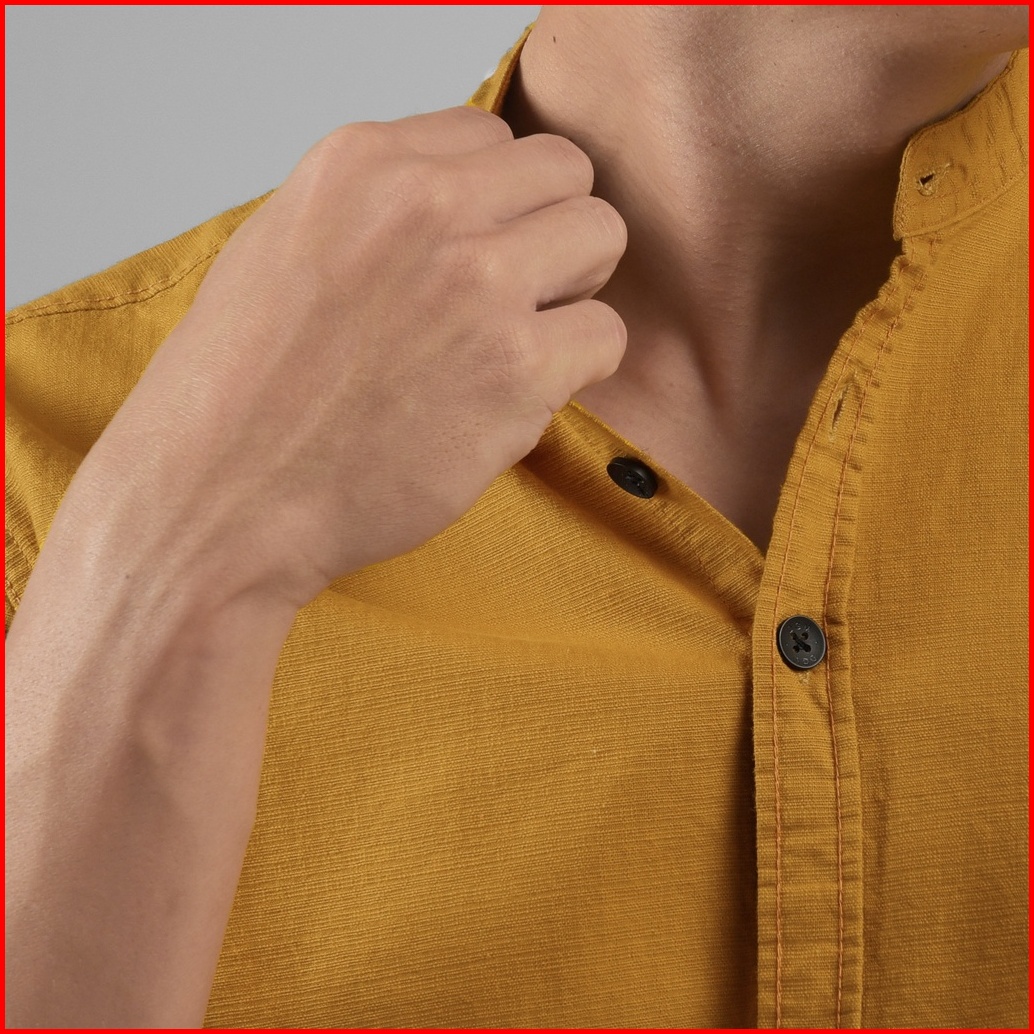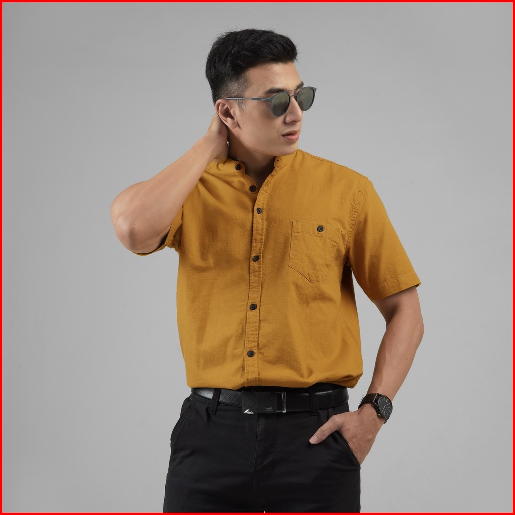 Dgm Kemeja Sanghai Pria Polos Lengan Pendek Mustard 1021