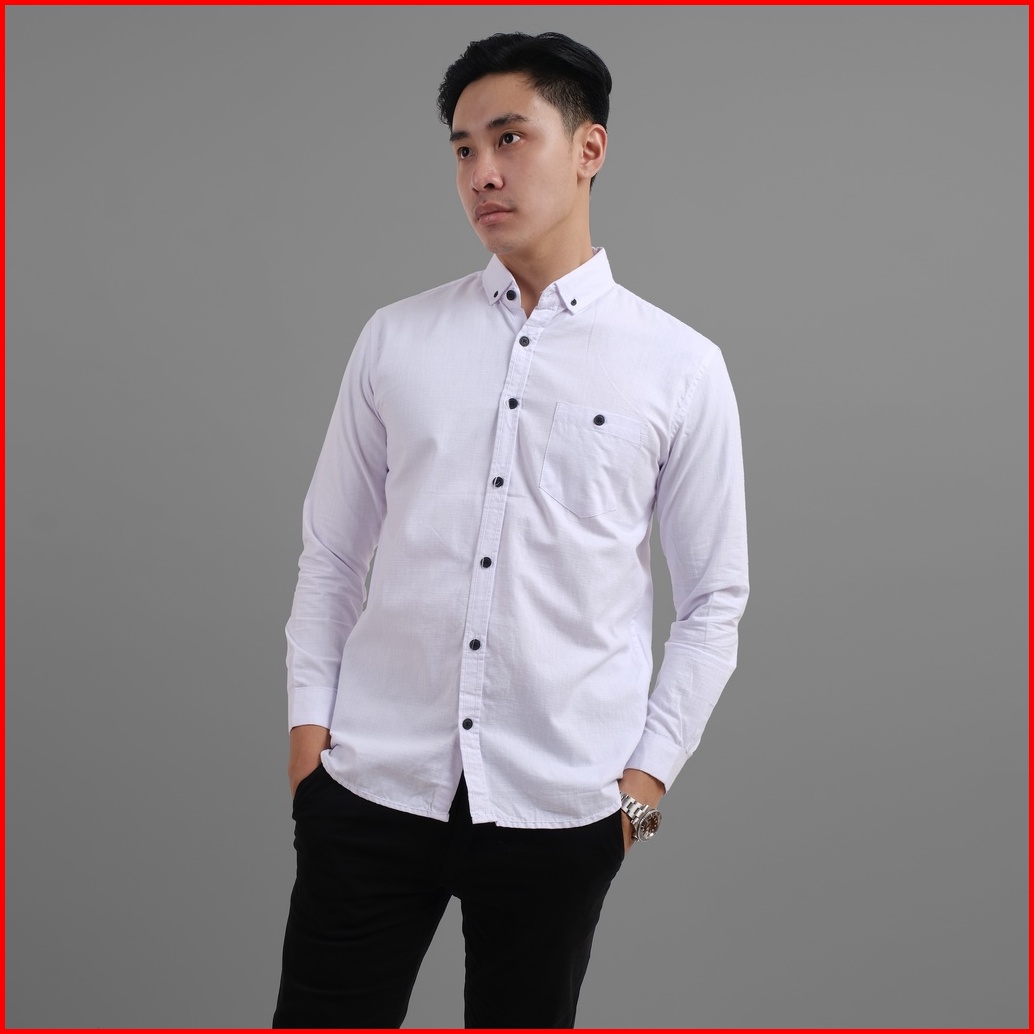 Dgm Fashion Kemeja Pria Basic Polos Lengan Panjang White 1003