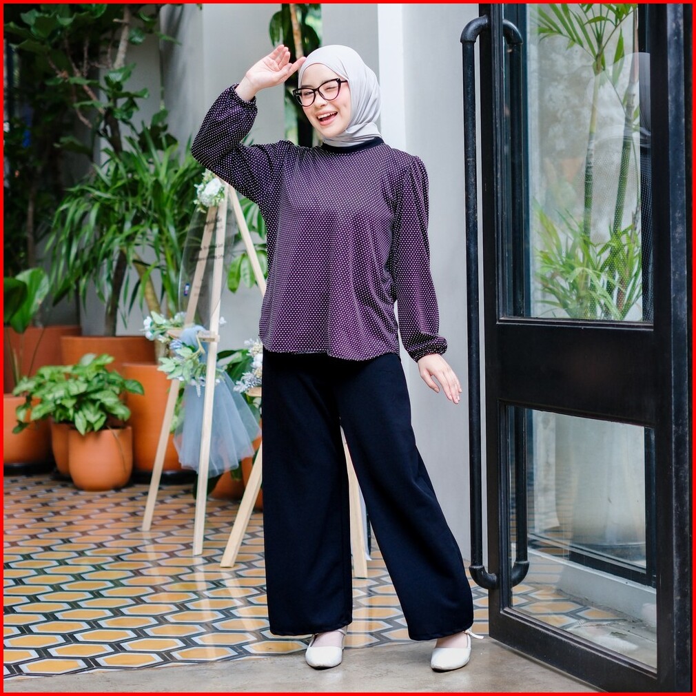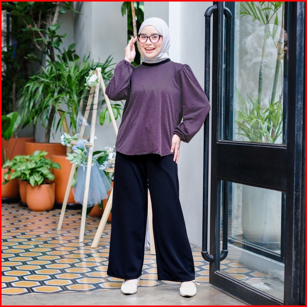 Mybamus Lika One Set Setelan Muslim Atasan Wanita Lengan Balon Kulot Terbaru