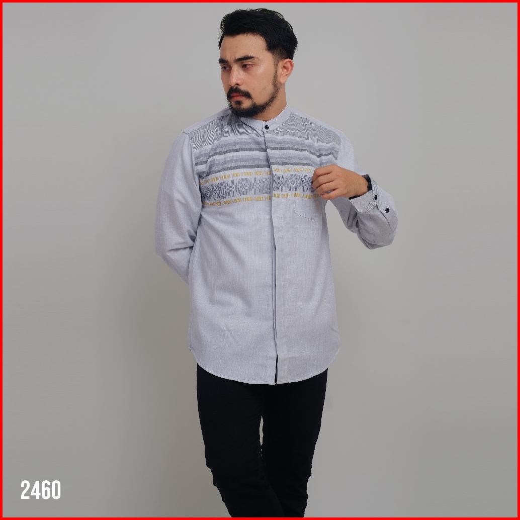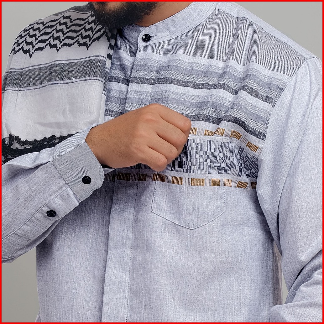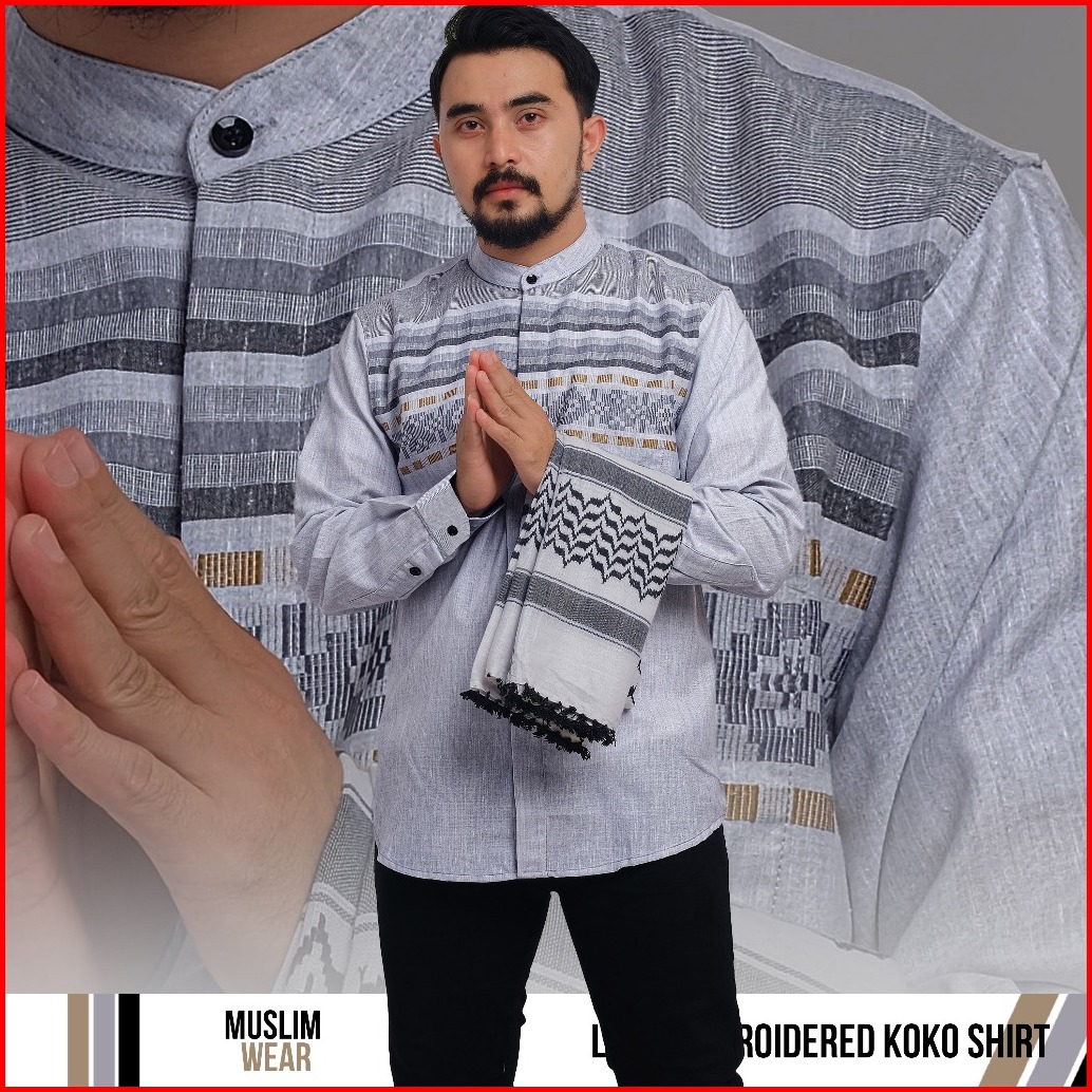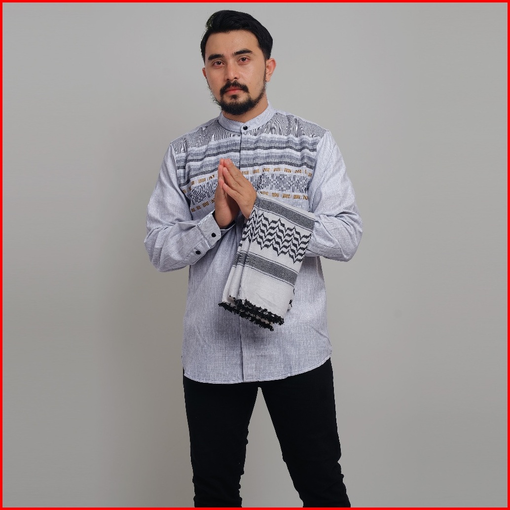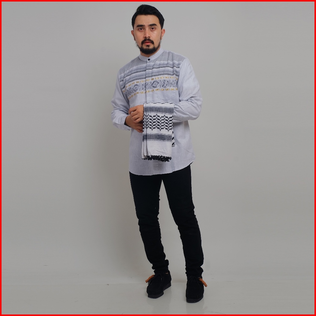 Dgm Kemeja Pria Koko Soft Blue Bordir Lengan Panjang Motif Gradasi Biru Hitam 2460