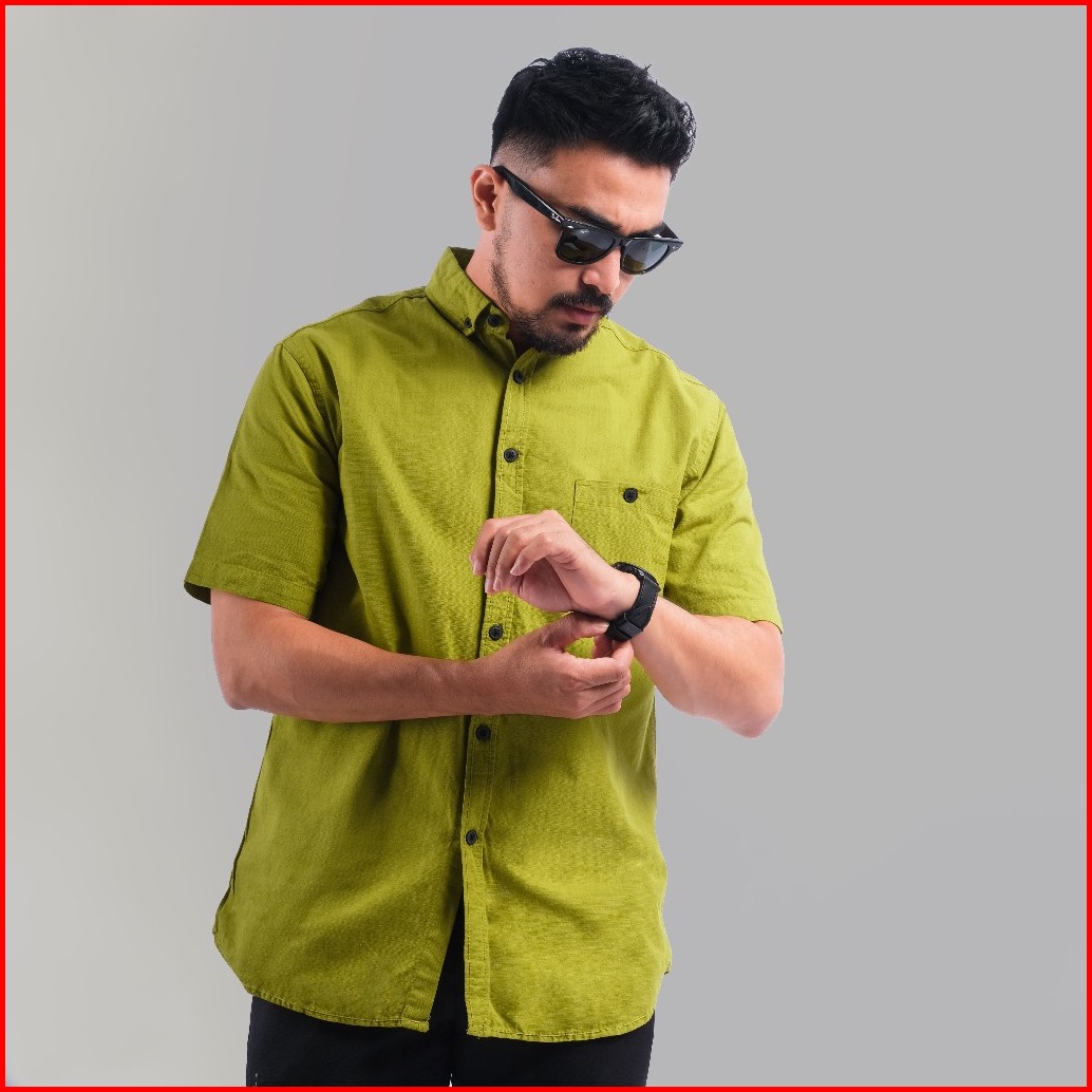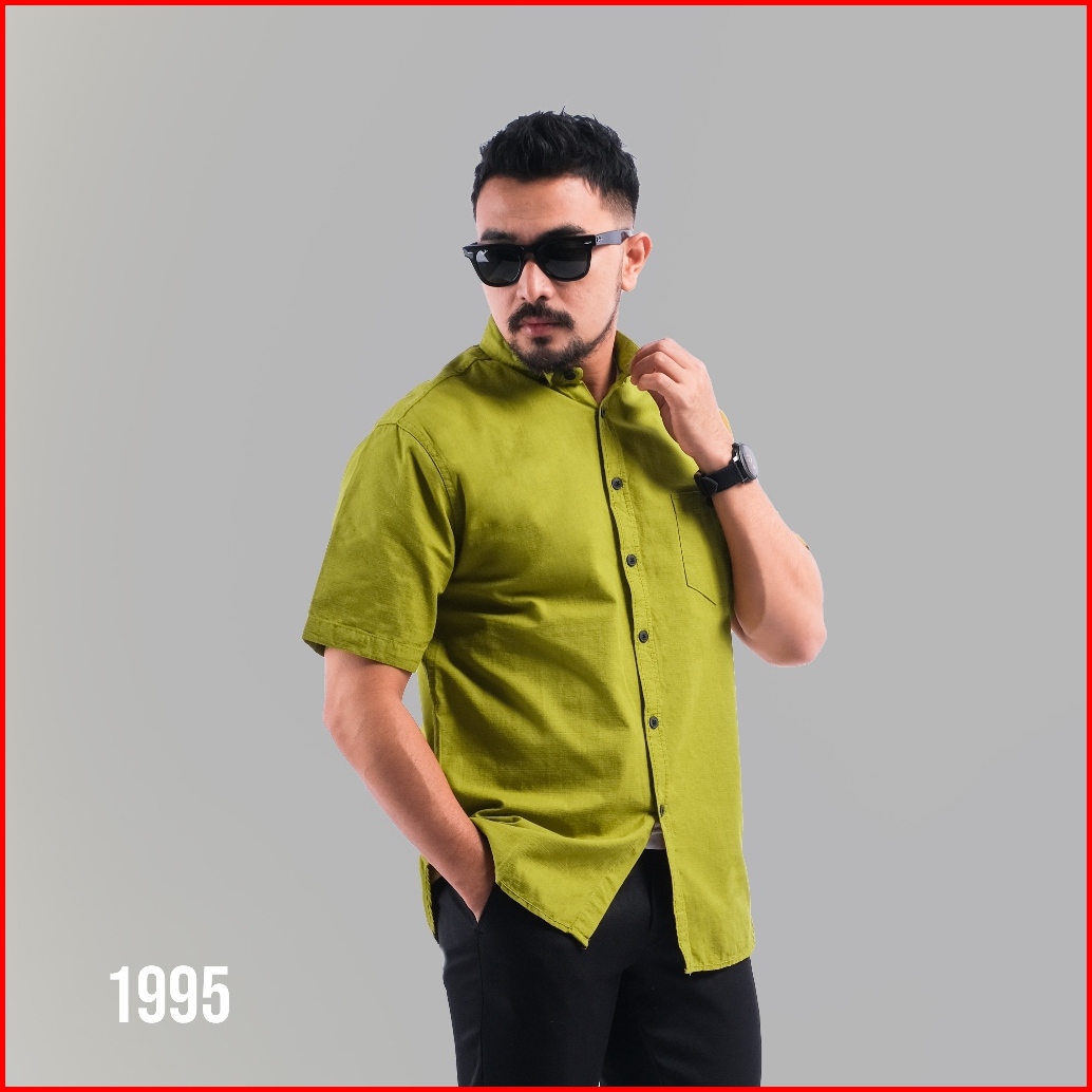 Dgm Kemeja Polos Pria Lengan Pendek Kemeja Lime 1995